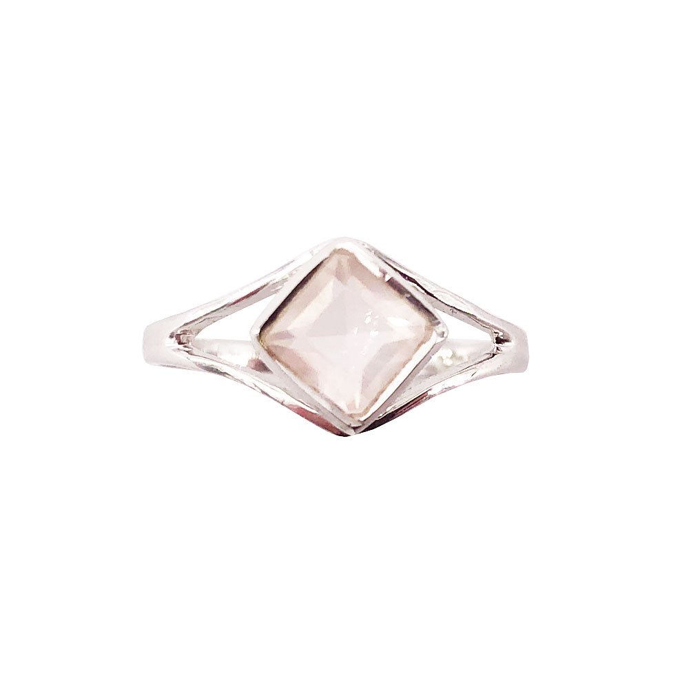 Bague quartz rose « Elisabeth » en argent 925 – Cabochon carré