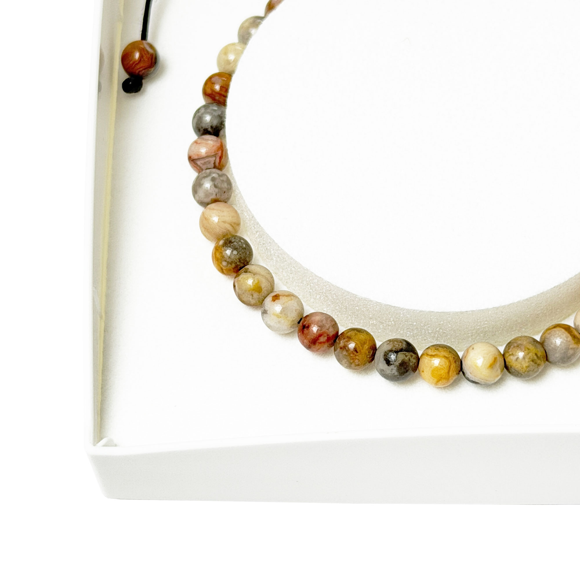 Descriptif du bracelet Agate crazy lace en pierres boules 4mm cordon ajustable