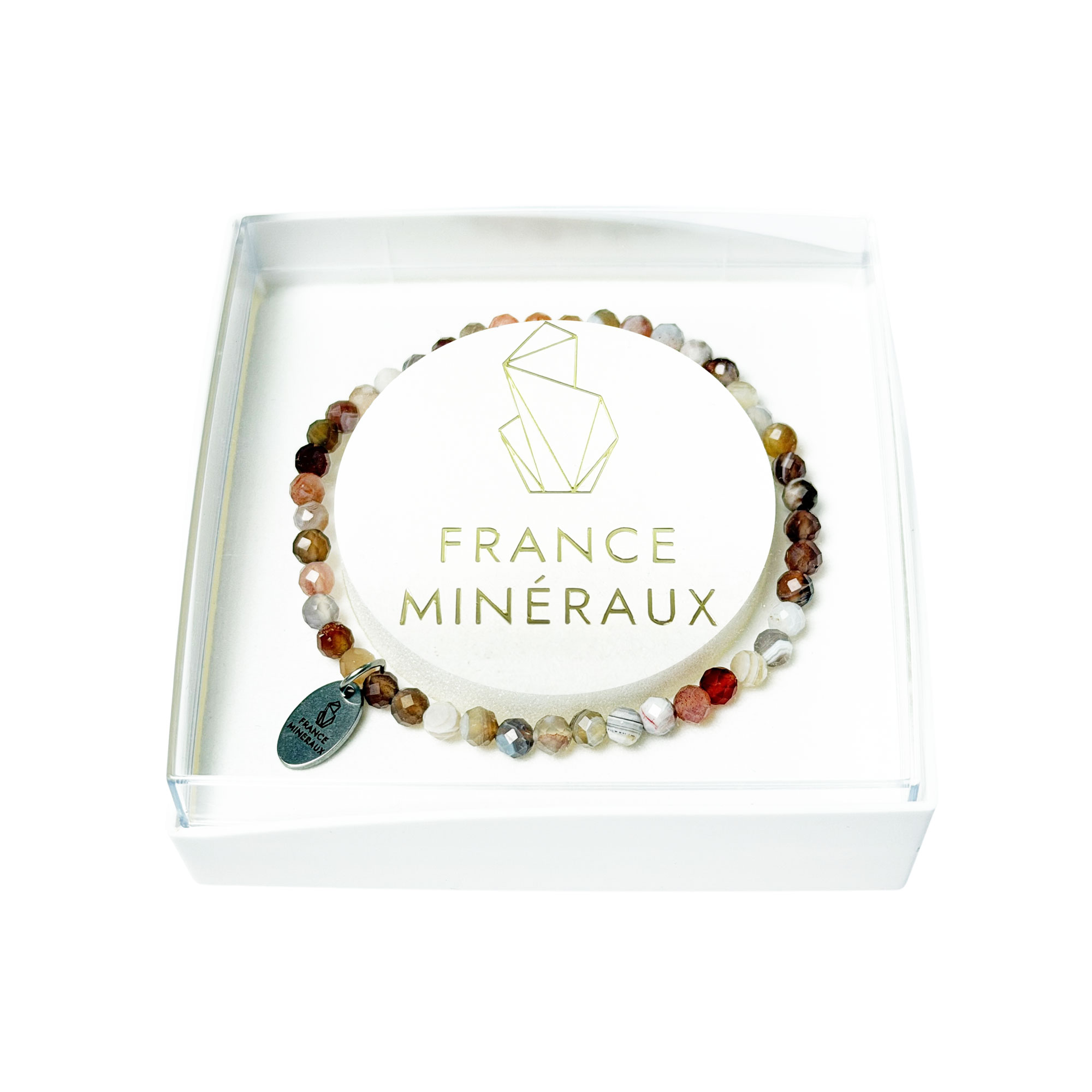 Descriptif du Bracelet Agate du Botswana – Perles facettées 3/4mm – 18cm