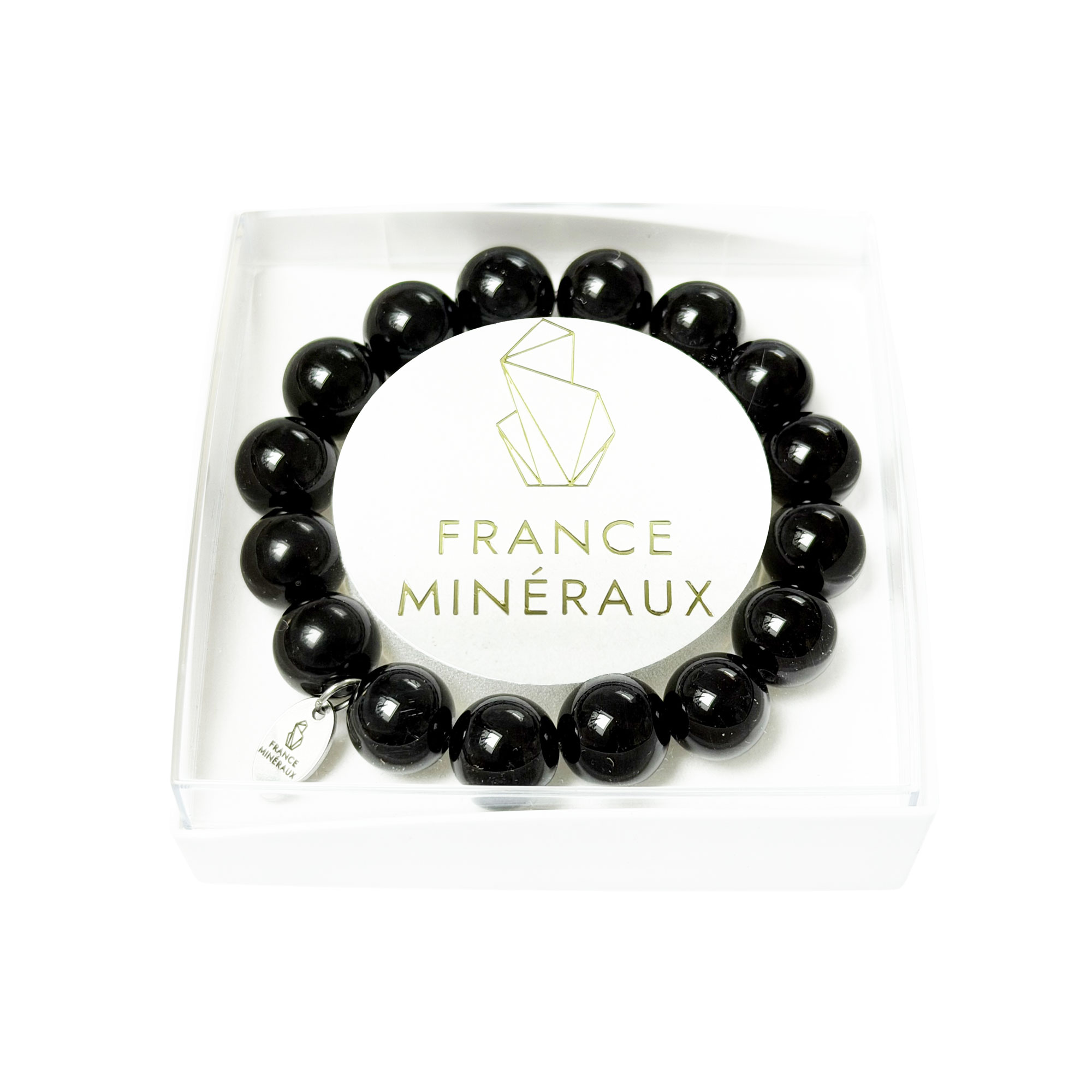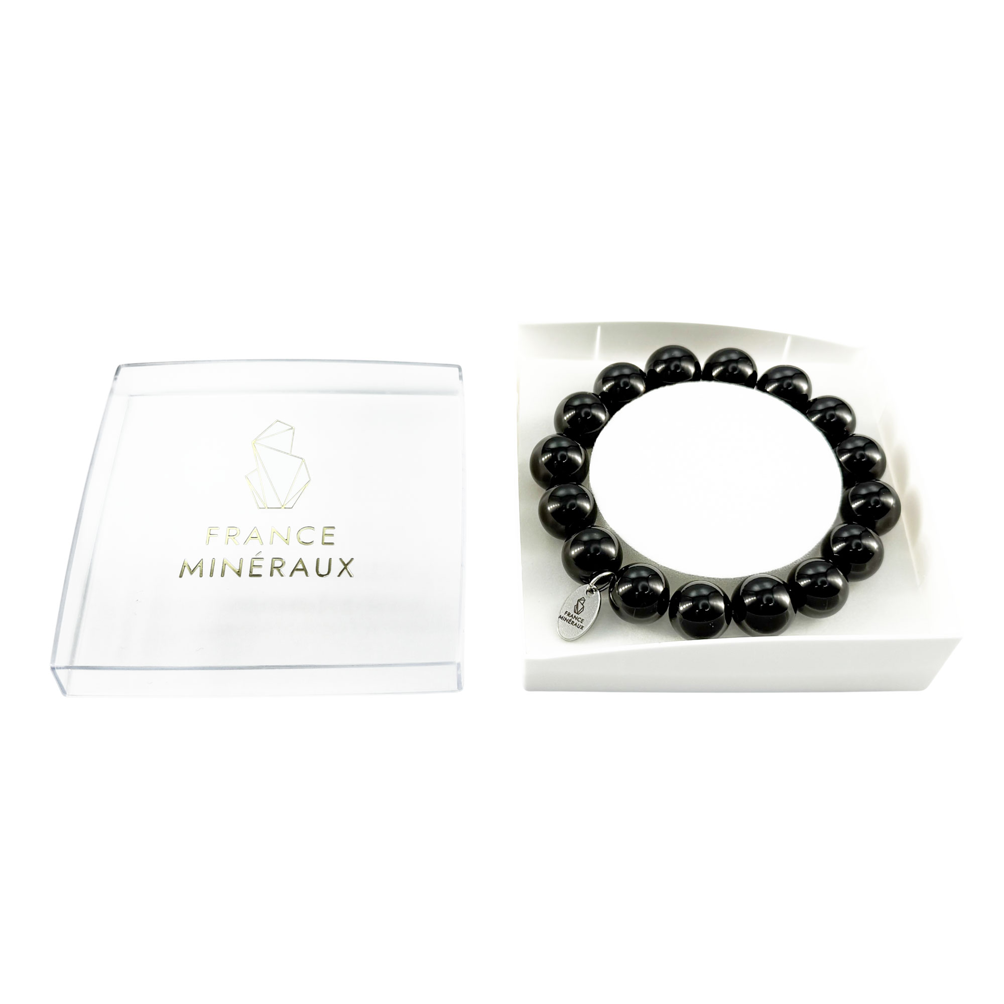 Le bracelet agate noire 12mm est un bijou qui orne vos poignets avec élégance et discrétion. Il est composé de perles rondes en agate noire de 12mm de diamètre, monté sur un fil élastique. Il existe plusieurs longueurs de ce bracelet, pouvant ainsi correspondre à tous les poignets. Cette pierre tire son nom du grec akhatés faisant référence à la Rivière Akhatês en Sicile, où on la trouve en abondance. Composée de dioxyde de silicium et ayant une dureté comprise entre 6,5 et 7, l’agate noire appartient à la catégorie des quartz. Ses plus grands gisements se trouvent dans de nombreux pays tels que l’Australie, le Brésil, l’Inde, le Mexique et l’Argentine.