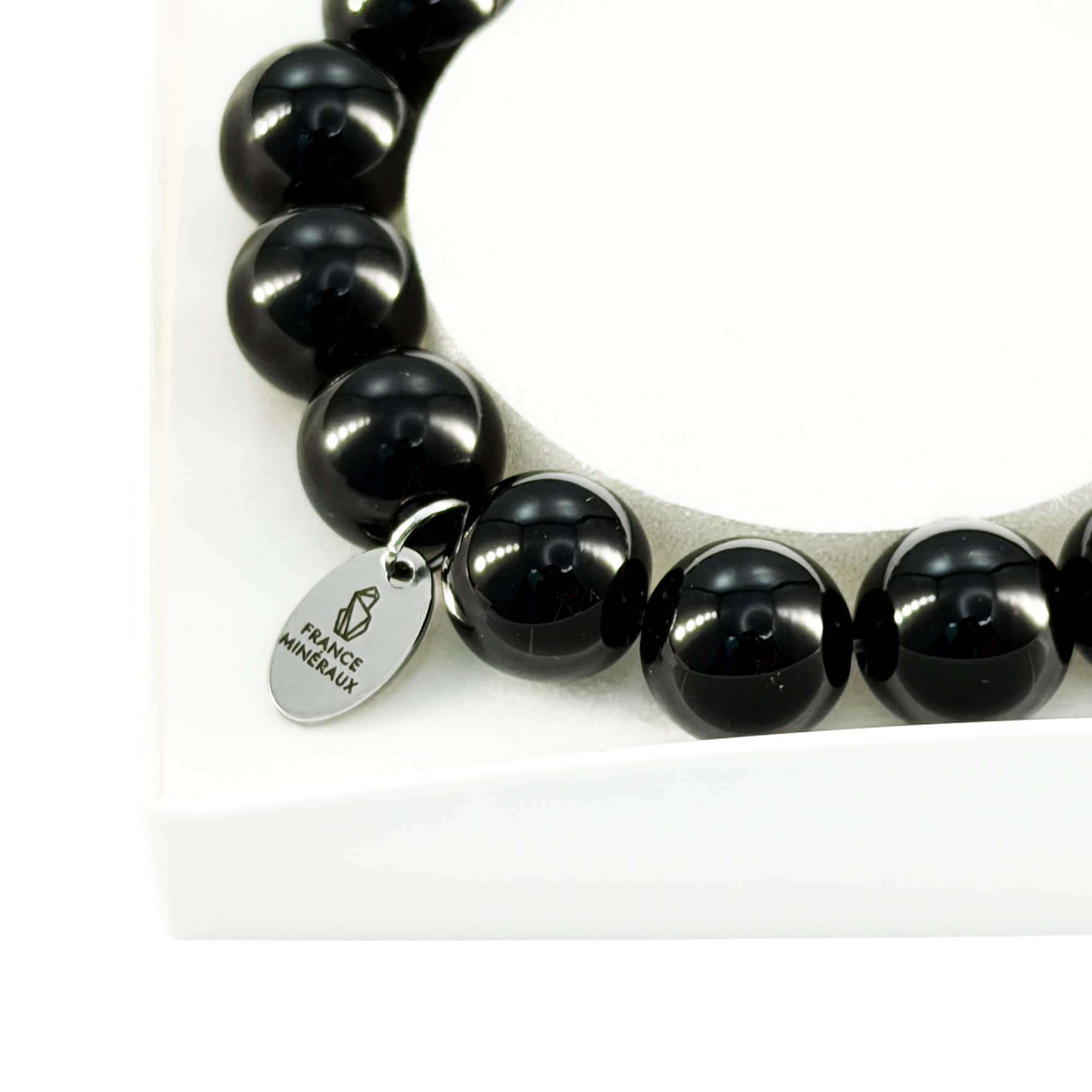 Descriptif du bracelet agate noire en pierres boules de 12mm