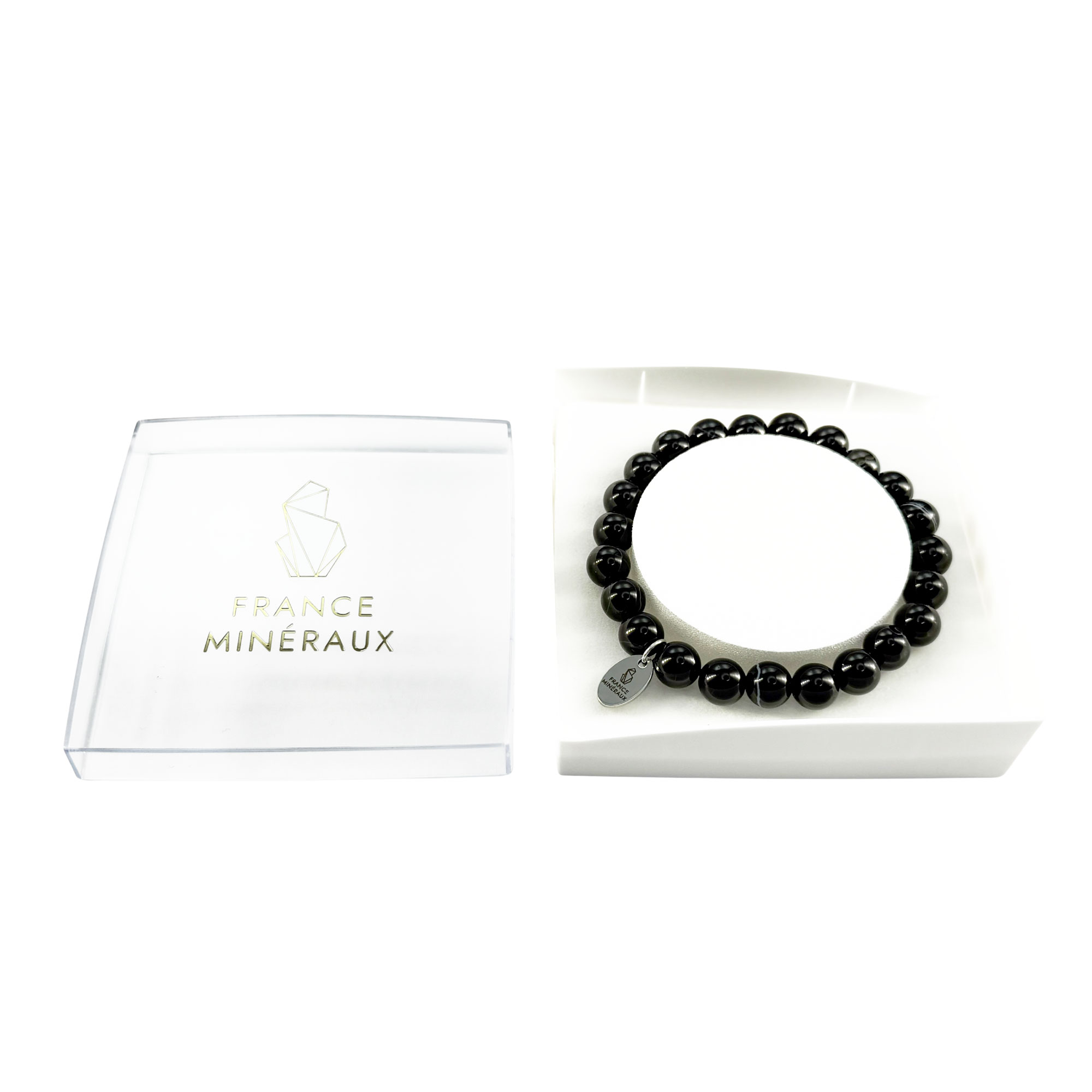 Le bracelet agate noire zonée est proposé en 2 longueurs : soit 18cm, soit 20cm. La première longueur comprend environ 22 perles boules et la seconde longueur comprend environ 25 perles boules. Chaque bracelet est proposé en pierres boules de 8mm de diamètre. Chaque perle agate noire zonée est sélectionnée au détail par l’équipe de France Minéraux ce qui vous garantit des bijoux de pleine qualité. En amont de la conception, les pierres boules de 8mm en agate noire zonée sont sélectionnées une par une, puis en aval de la conception, les bracelets sont vérifiés un par un pour être sur de n’avoir aucun défaut et de vous apporter un bijou de haute qualité.