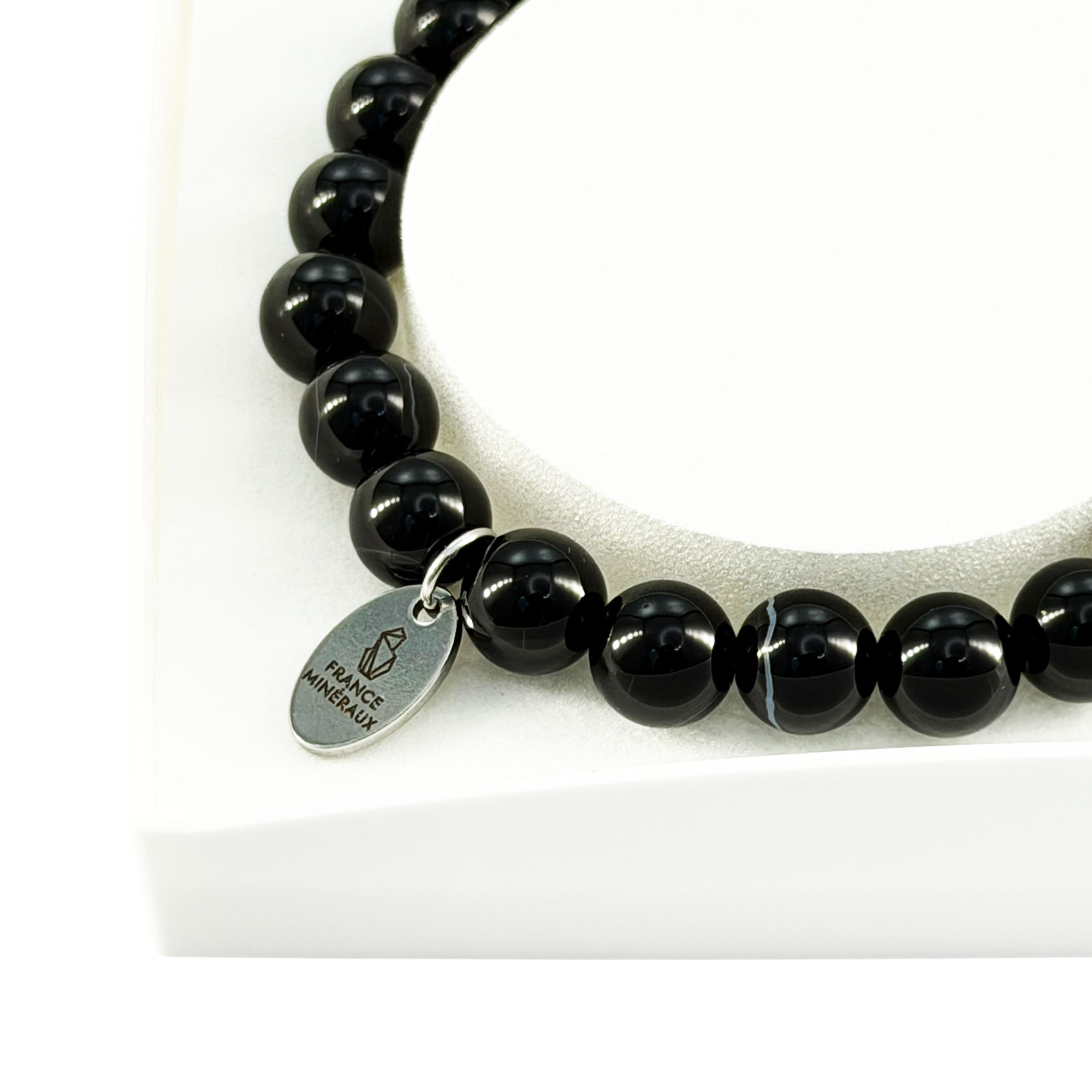 Descriptif du bracelet agate noire zonée en pierres boules 8mm