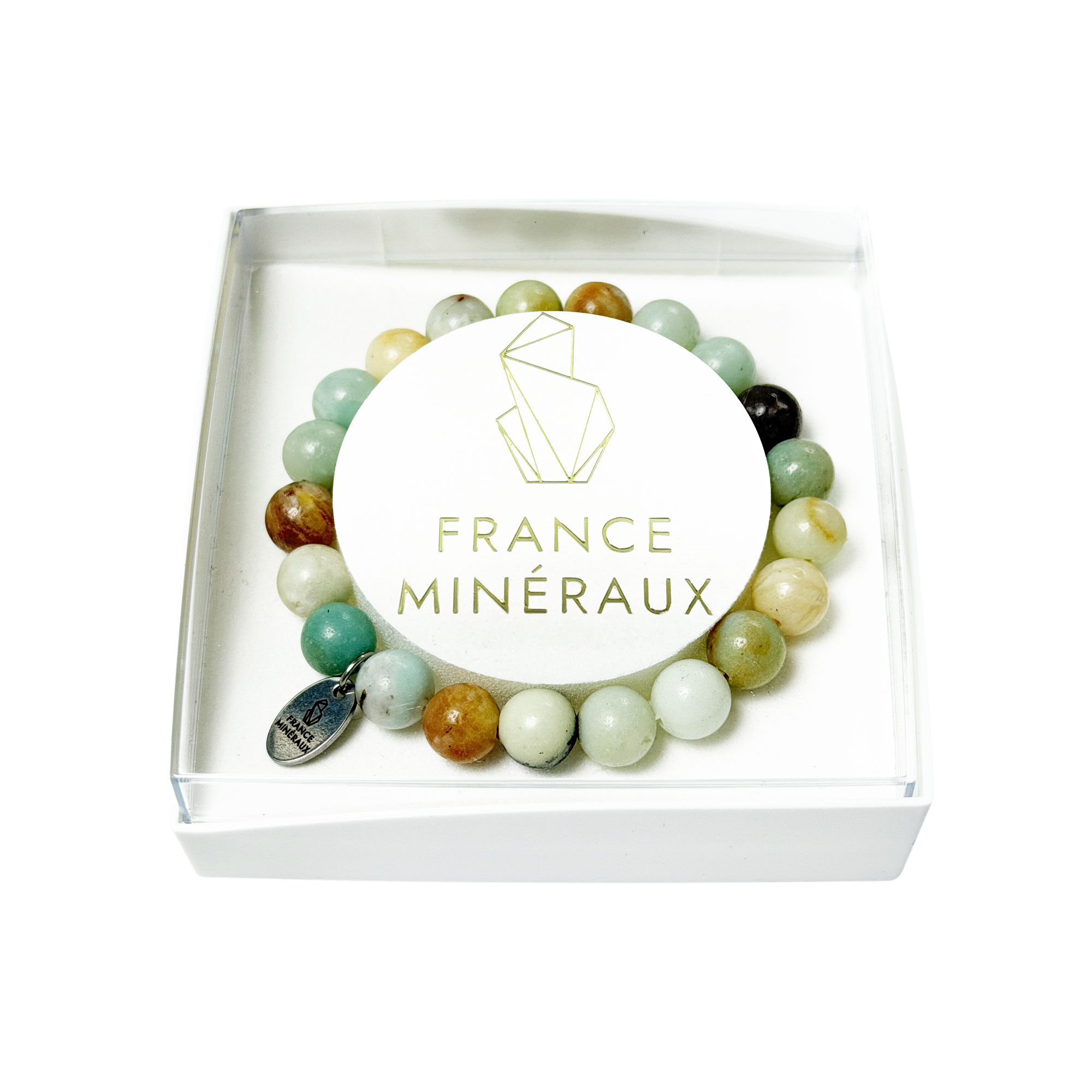 L’amazonite est utilisée en lithothérapie pour ses nombreux bienfaits sur le corps et l’esprit. Pour pouvoir en bénéficier pleinement, le bracelet amazonite multicolore 8mm a été façonnée à la main afin d’être portée facilement autour du poignet. En portant ce bijou quotidiennement, vous bénéficierez ainsi de toutes ses propriétés. Ce bracelet amazonite multicolore 8mm est un bijou unique fabriqué dans notre atelier.