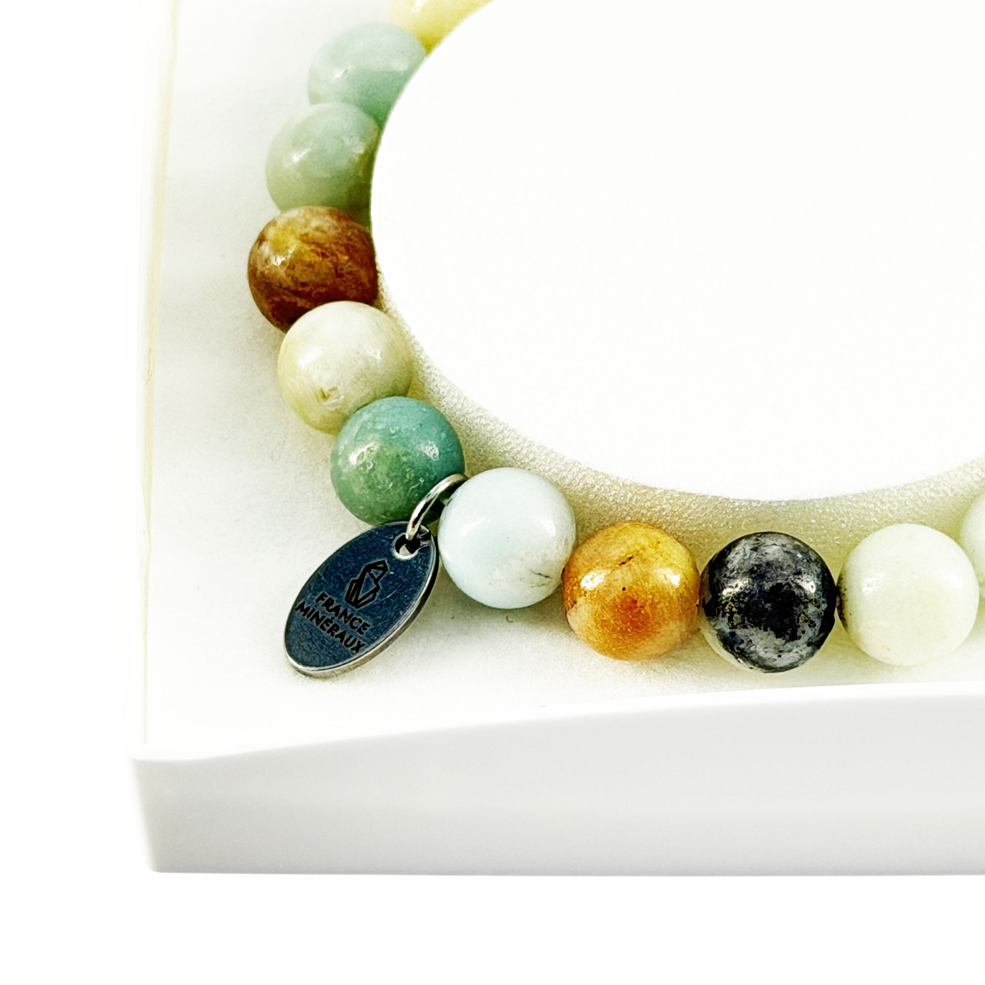 Descriptif du bracelet amazonite multicolore en pierres boules 8mm