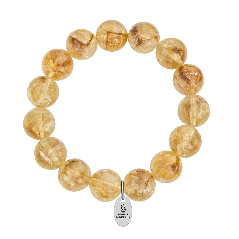 Le bracelet citrine en pierres boules de 12mm se démarque par l’étonnante couleur de ce quartz, dont le nom provient du latin citrus, qui veut dire citron en français. Sa faible teneur en oxyde de fer confère à cette pierre très rare son chaleureux coloris jaune et ses nombreuses nuances dorées. Comme pour l’ensemble de ses produits, France Mineraux a apporté le plus grand soin à la confection de ce bracelet citrine 12mm, entièrement réalisé à la main. Les pierres le composant on été minutieusement choisies pour leur pureté et leurs grandes vertus énergétiques.