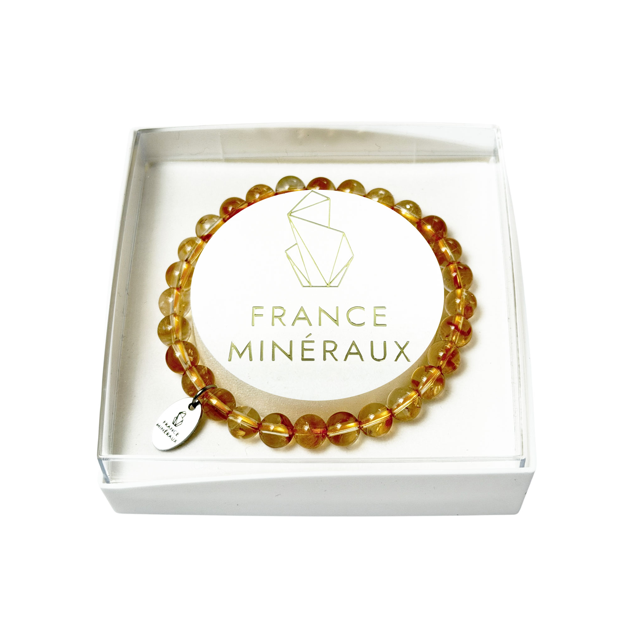 Entièrement confectionné en France et à la main par France Minéraux, ce superbe bracelet citrine en pierres boules de 6mm se présente à vous dans son plus bel éclat. La citrine que nous vous proposons est authentique et a fait l’objet d’une présélection drastique. Ce bracelet a été décliné en 2 différentes longueurs, à savoir 18cm pour les petits poignets, 20cm pour les poignets intermédiaires. Si vous choisissez le petit modèle, celui-ci sera composé d’environ 29 perles. Si vous privilégiez le modèle standard, il sera alors composé de 32 perles.