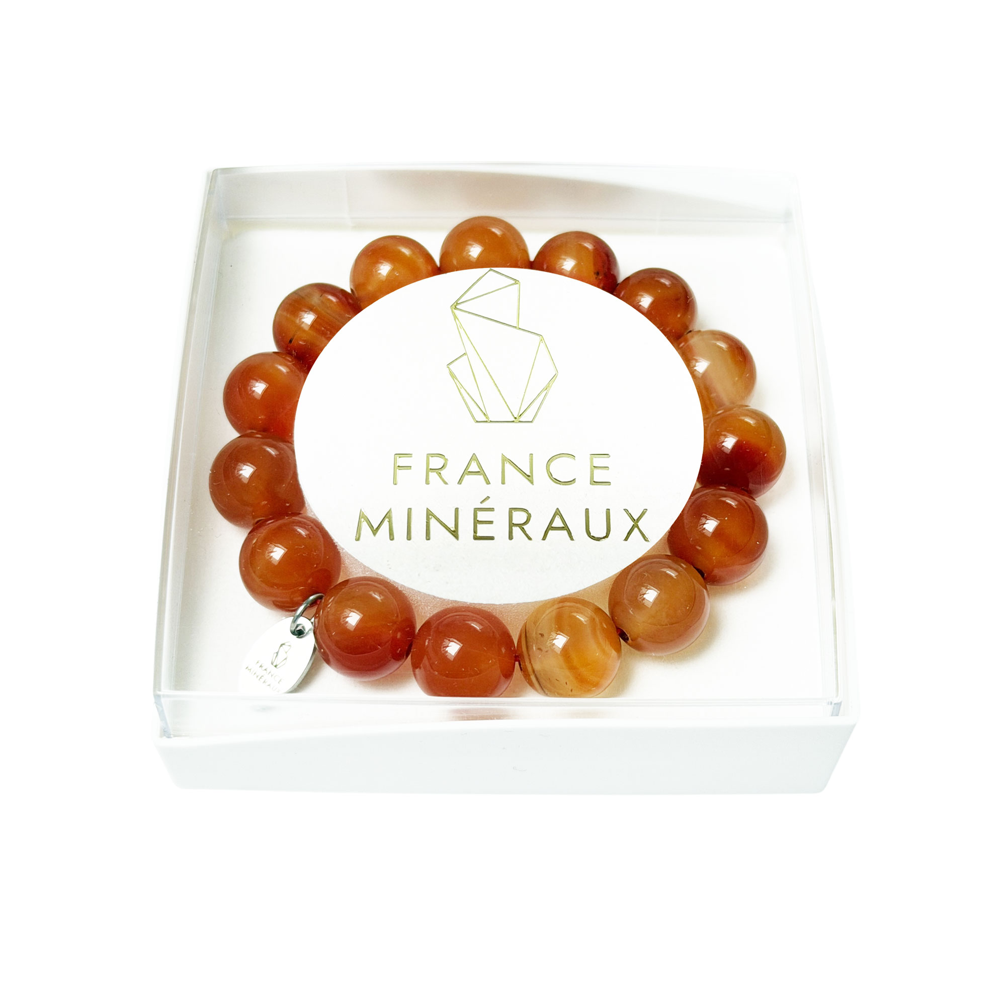- Le bracelet cornaline en pierres boules de 12mm est également très efficace sur le plan physique. En écho à sa couleur, la cornaline améliore la qualité du sang, apaise les seignements de nez et les hémorragies. C’est aussi une pierre très énergique, qui permet de lutter contre la fatigue et les maux de ventre.
