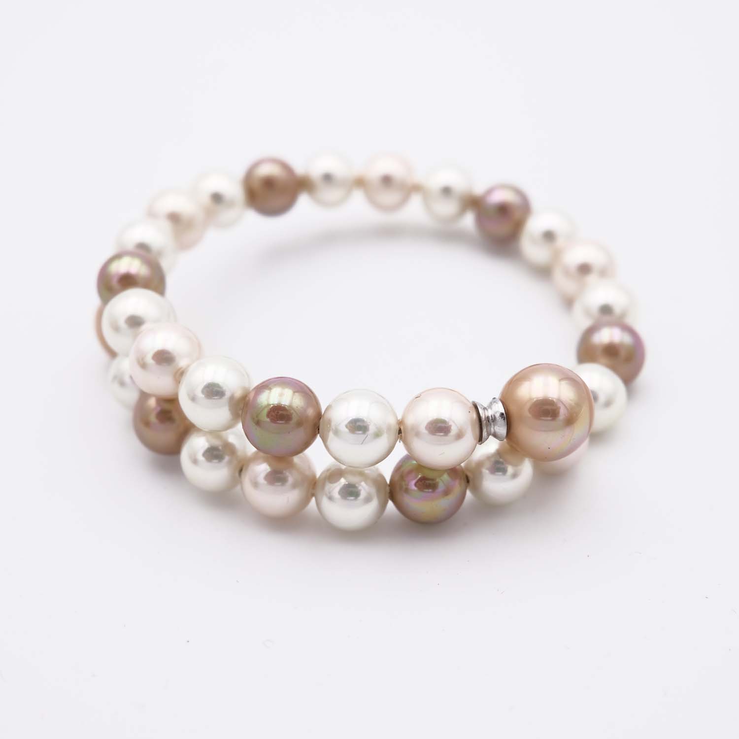 Description du bracelet en Perles de Majorque – 8 et 10 mm – Long. ajustable