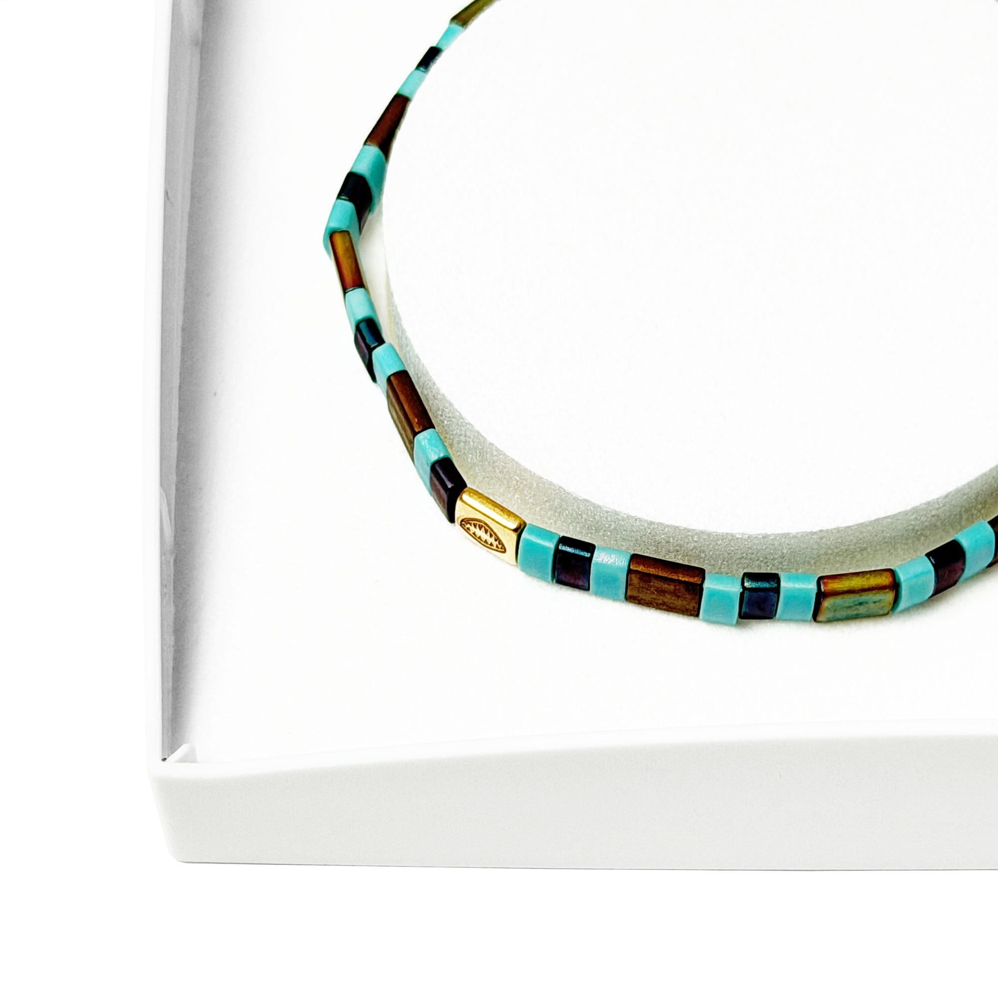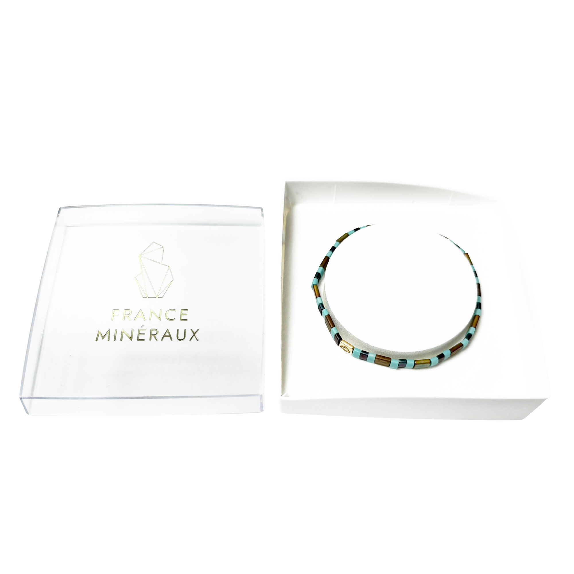 Nous vous proposons un bracelet en perles MIYUKI mixte. Le bracelet en perles MIYUKI peut être porté à la fois par un homme et par une femme. Très original, ce bijou est unique. Il est fabriqué avec des perles en verre soufflé. Originaire du Japon, le bracelet en perles MIYUKI comporte des perles plates. Les perles sont enfilées et serrées les unes contre les autres. Il n’y a pas d’espaces entre les perles. Les perles sont présentes sur toute la longueur du bracelet. Un fermoir métallique doré permet d’assurer la fermeture. La couleur du métal s’accorde parfaitement avec les perles en verre soufflées. Pour fabriquer un bracelet en perles MIYUKI, nous utilisons les perles selon plusieurs éléments.