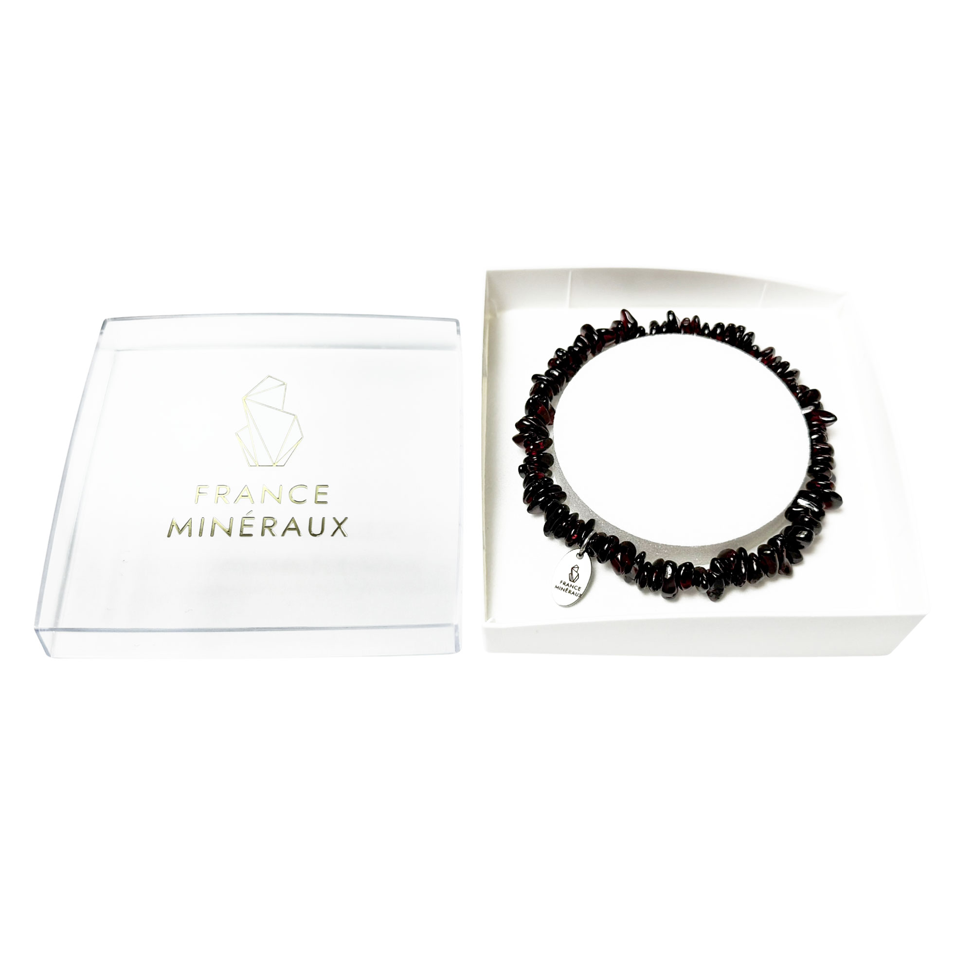 Le bracelet Grenat baroque est fait à partir de pierres polies assemblées à la main c’est pourquoi il possède beaucoup de charme. Le rouge tirant sur le brun est la couleur prédominante des Grenats. Toutefois, ils peuvent arborer de nombreuses autres couleurs. Seul le bleu n’est pas représenté dans cette famille de minéraux. Utilisé depuis des milliers d’années en joaillerie, le Grenat provient de gisements situés en Afghanistan, en Inde, en Autriche, au Brésil, en République Tchèque ou encore en Autriche. Ce minéral qui appartient à la famille des néosilicates n’est pas transparent mais translucide. Aujourd’hui, cette pierre est largement utilisée en lithothérapie en raison de ses nombreuses vertus que vous trouverez ci-dessous.
