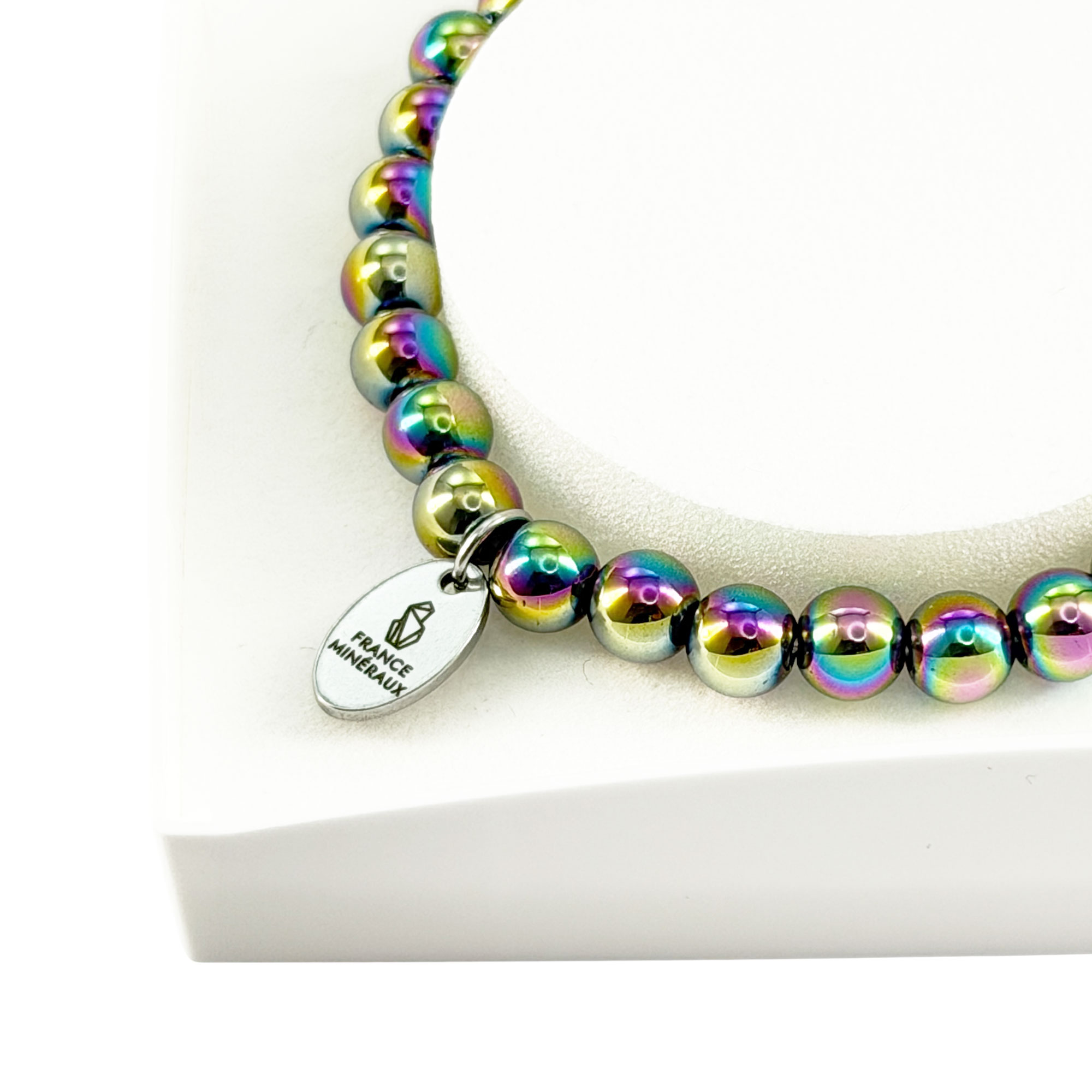 Bracelet Hématite Arc-en-ciel – Pierres boules 6mm – 18cm
