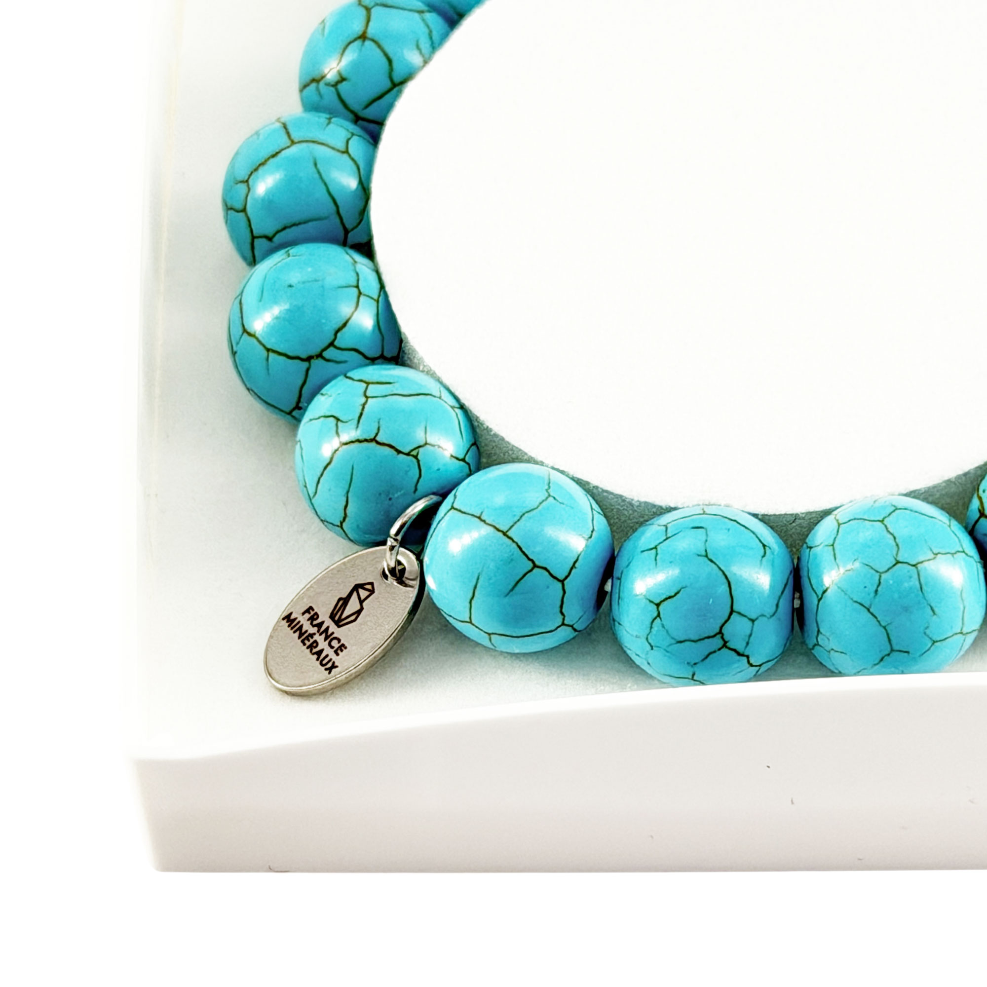 • Le bracelet howlite bleue 12mm est lié au chakra de la gorge, la communication.