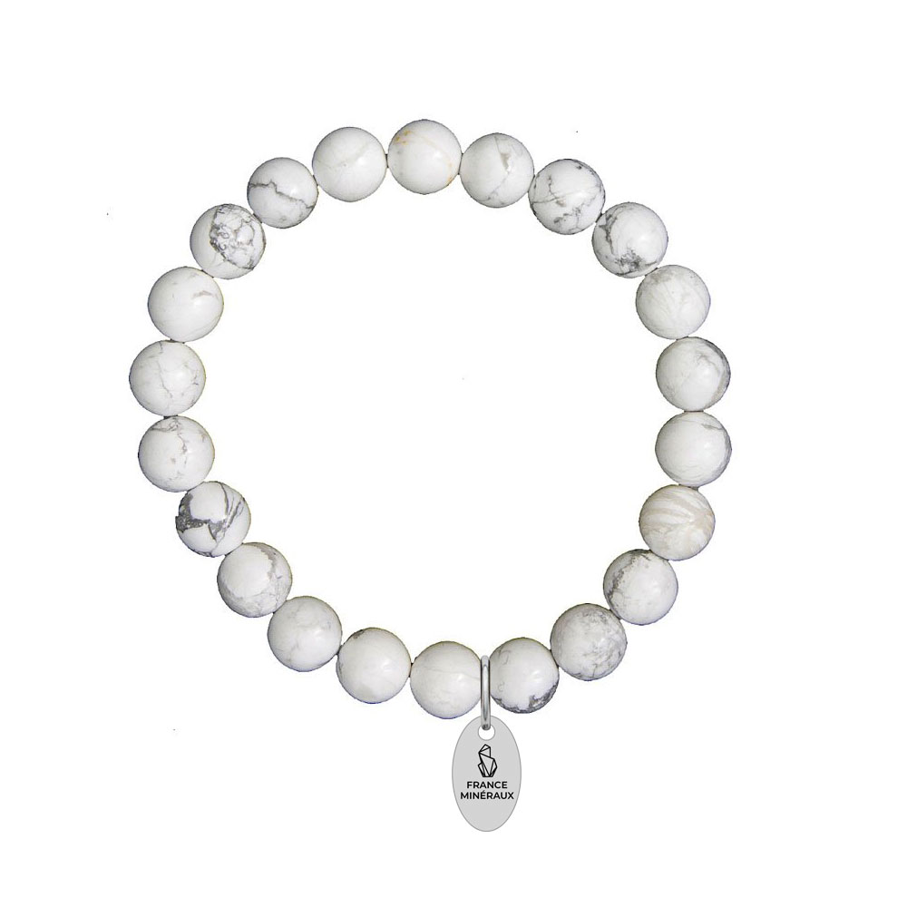Le bracelet howlite vous est présenté de façon uniforme avec des pierres boules 8mm. Il peut être composé d’environ 22 perles si vous le choisissez en longueur de 18cm ou composé d’environ 25 perles si vous le choisissez en 20cm. Pour vous garantir une qualité optimale et de superbes bijoux, les joailliers de France Minéraux sélectionnent chaque pierre boule de 8mm au détail, les trient par finition plus ou moins clair, et les assemblent pour concevoir un bijou unique et doté d’un magnifique design.