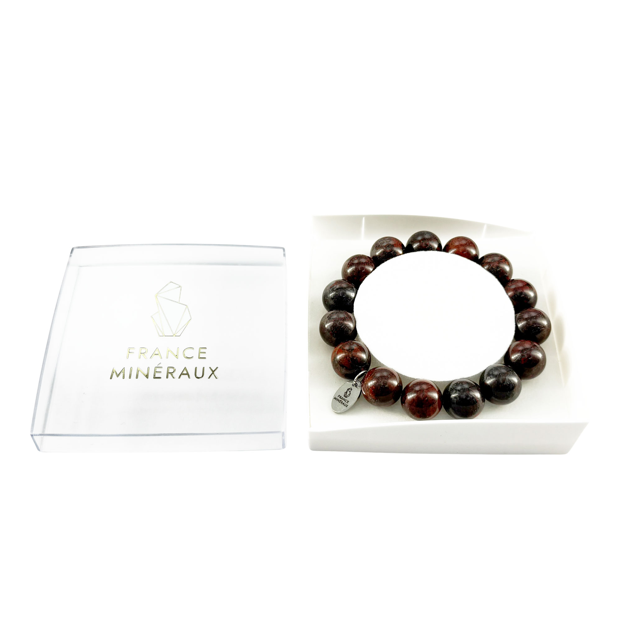 On retrouve le « jaspe bréschia » agencé sur deux bracelets, en tailles respectives de 18cm et 20cm. En sélectionnant le plus petit de ces bijoux, vous retrouverez 15 perles enfilées. En choisissant le format 20cm, ce sont 17 perles qui seront assemblées. Les options de personnalisations sont nombreuses, notamment au niveau du fermoir proposé en or ou en argent. Une conception sur mesure s’envisagera cependant pour votre bracelet jaspe bréchique 12mm, si vous en faîtes la demande à France Minéraux.