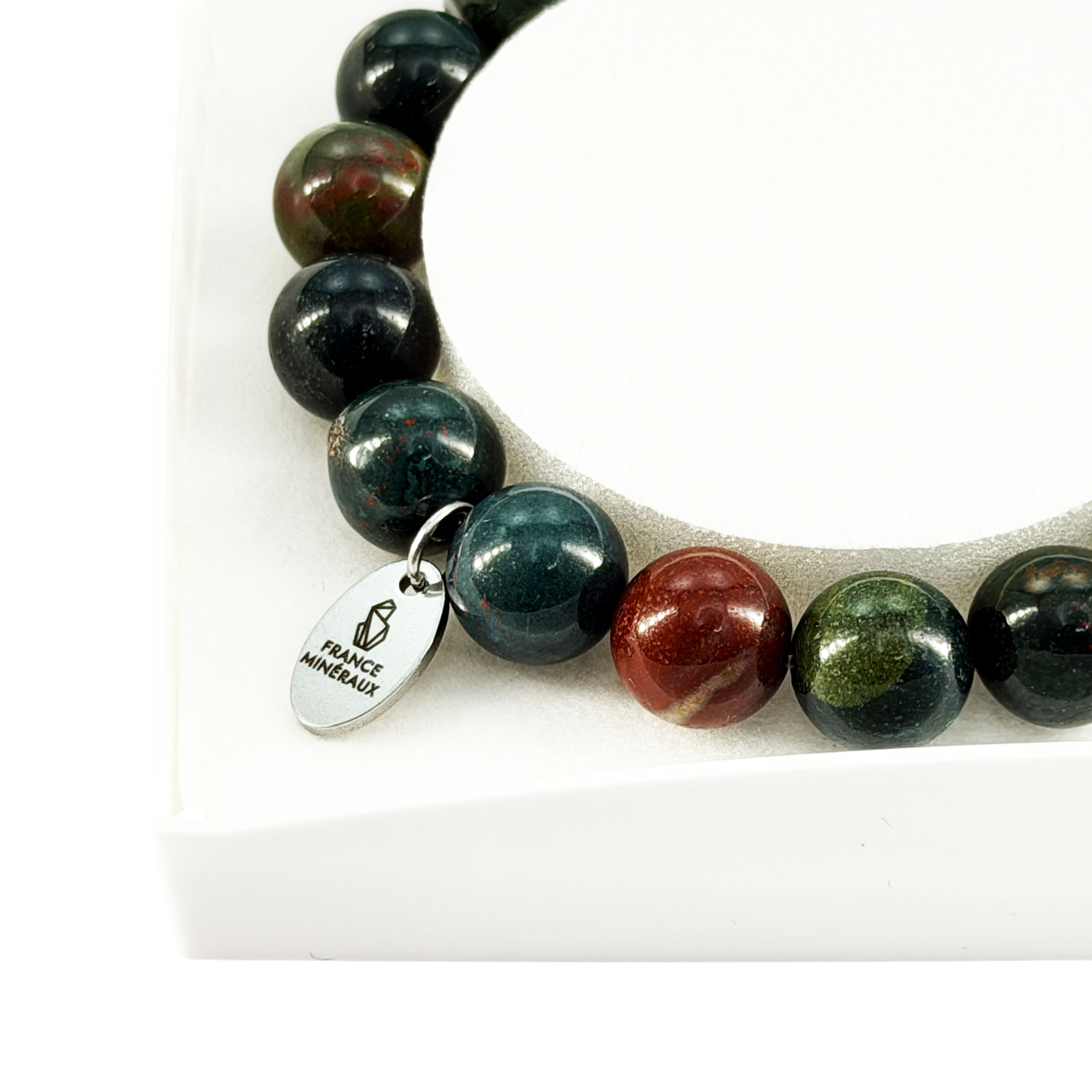 - Grâce aux pierres qui le compose, le bracelet jaspe héliotrope 10mm est utilisé contre la fatigue, la baisse de moral, affections cellulaires, les problèmes cardiaques, de l’arrêt de la fertilité et de menstruations.
