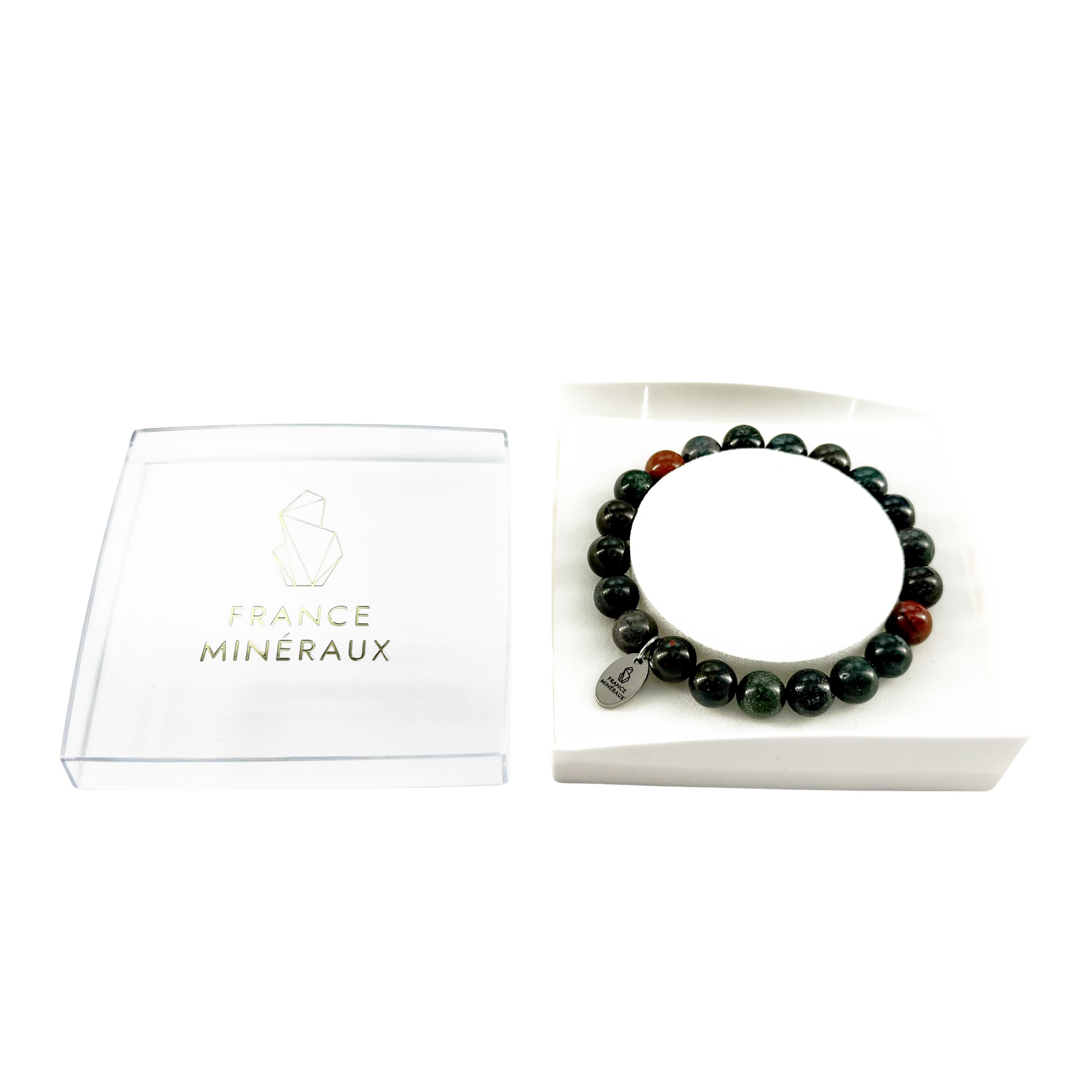 Egalement appelé jaspe sanguin, le bracelet jaspe héliotrope est proposé par l’équipe de France Minéraux en pierres boules de 8mm. Ce dernier est proposé en 2 longueurs différentes que sont le 18cm et 20cm. En 18cm, le bracelet jaspe héliotrope sera composé d’environ 22 perles. En 20cm, il sera composé d’environ 25 perles. Quelque soit le bracelet que vous choisirez, vous pourrez avoir la certitude qu’il sera à la fois authentique et de très belle qualité. En effet, toutes les perles en jaspe héliotrope sont sélectionnées avec soin pour confectionner chaque bracelet.