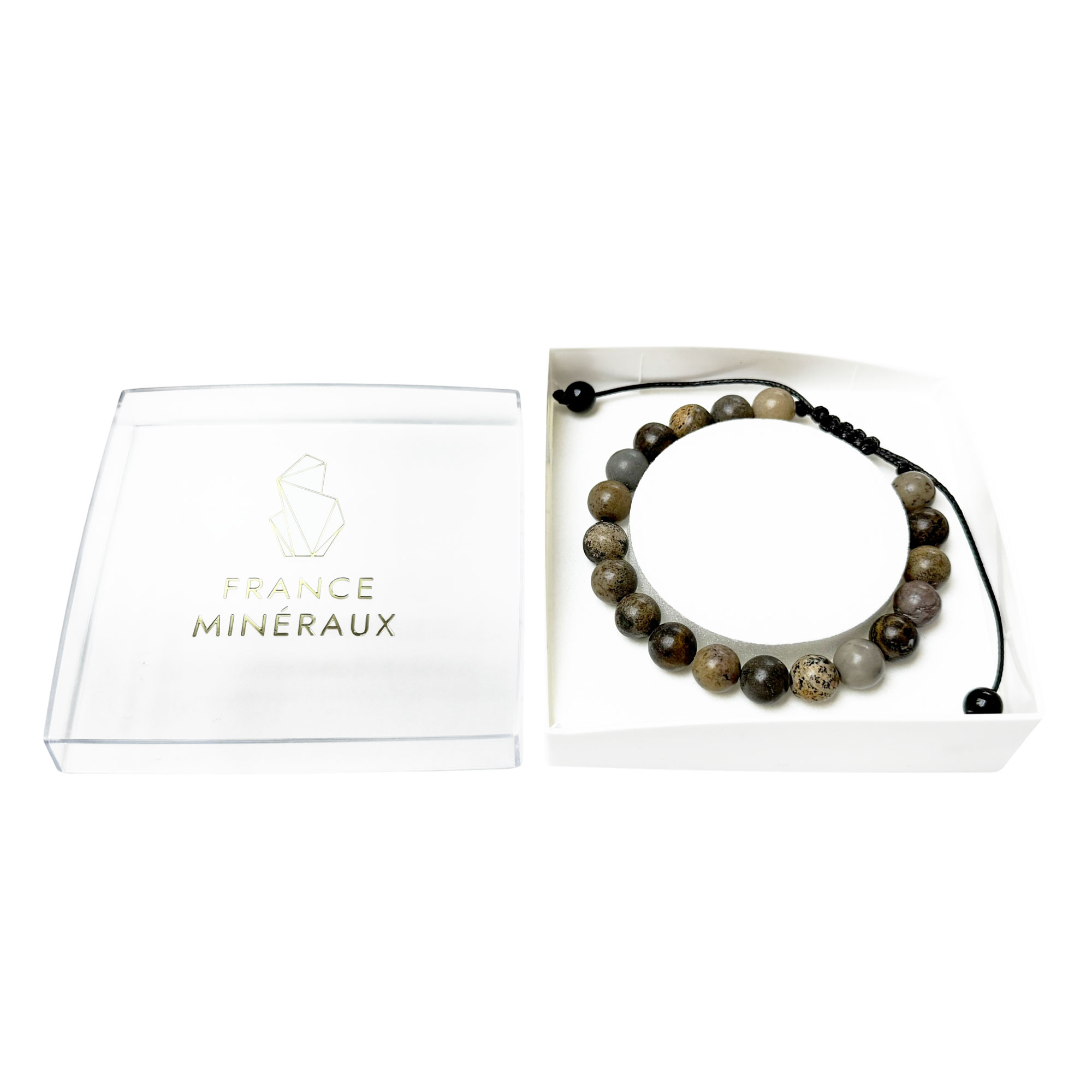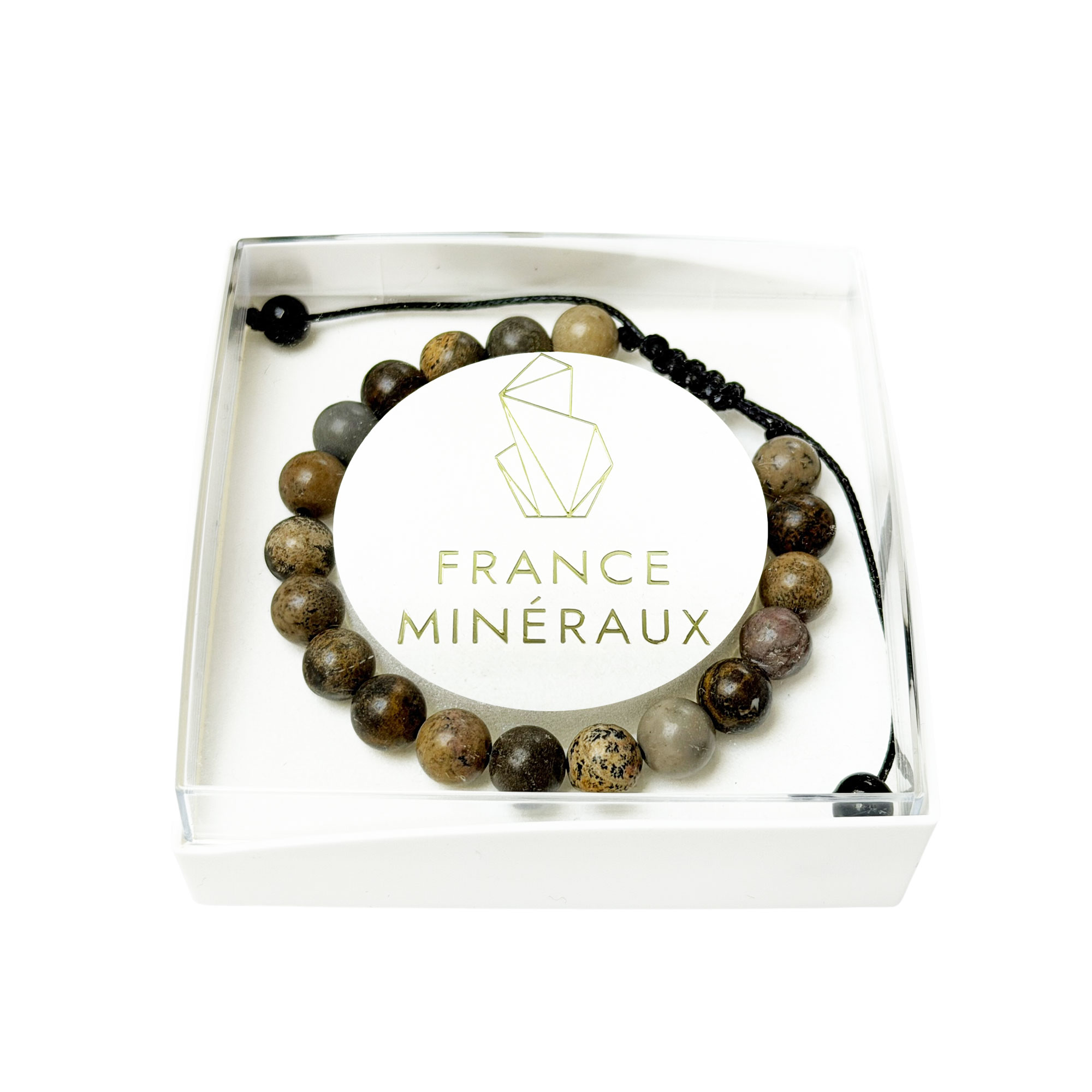 Découvrez le bracelet jaspe léopard en pierres boules 8mm de France Minéraux. Ce très beau bracelet se compose de pierres au coloris brun avec des taches circulaires de couleur jaune, brun ou rouge, d’où leur ressemblance avec le pelage du léopard. Ces cercles sont en fait des inclusions de minéraux comme la biotite, le quartz et le feldspath. France Minéraux a sélectionné pour vous les plus belles pierres afin de vous offrir un bijou unique.