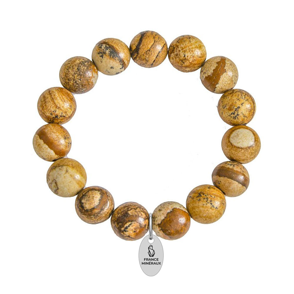 - Le bracelet jaspe paysage en pierre boules de 12mm est particulièrement affilié aux chakras frontal et racine.