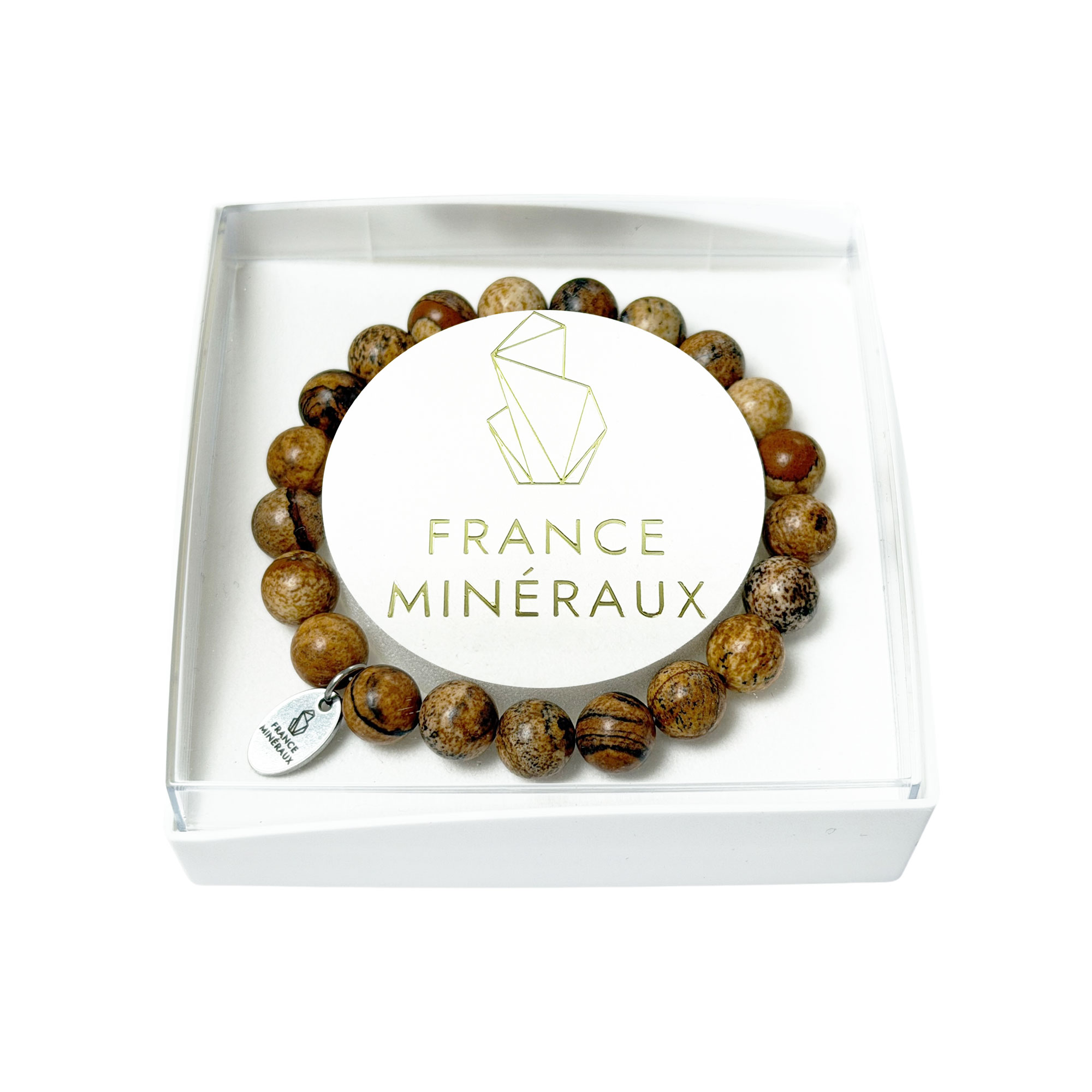 De ses superbes couleurs allant du beige au marron, le bracelet jaspe paysage redore votre teint. Ce bracelet est composé de pierres boules 8mm et vous est proposé en 2 longueurs différentes, à savoir 18cm et 20cm. La première longueur de 18cm comprend environ 22 perles, la seconde longueur de 20cm comprend à peu près 25 perles. Chaque pierre boule 8mm en jaspe paysage est sélectionnée avec soin au détail par l’équipe de France Minéraux afin de vous garantir une qualité optimale. Après cette sélection, nous confectionnons à la main chacun de nos bracelets et nous validons une dernière fois la qualité de celui-ci au préalable de l’expédition. Ainsi, vous avez la pleine garantie d’avoir un bracelet unique, de qualité et authentique.