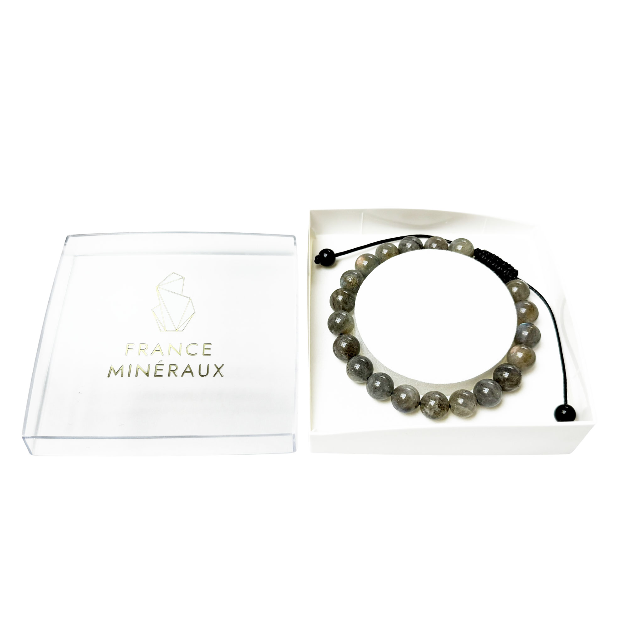 Descriptif du bracelet Labradorite en pierres boules 8mm cordon ajustable