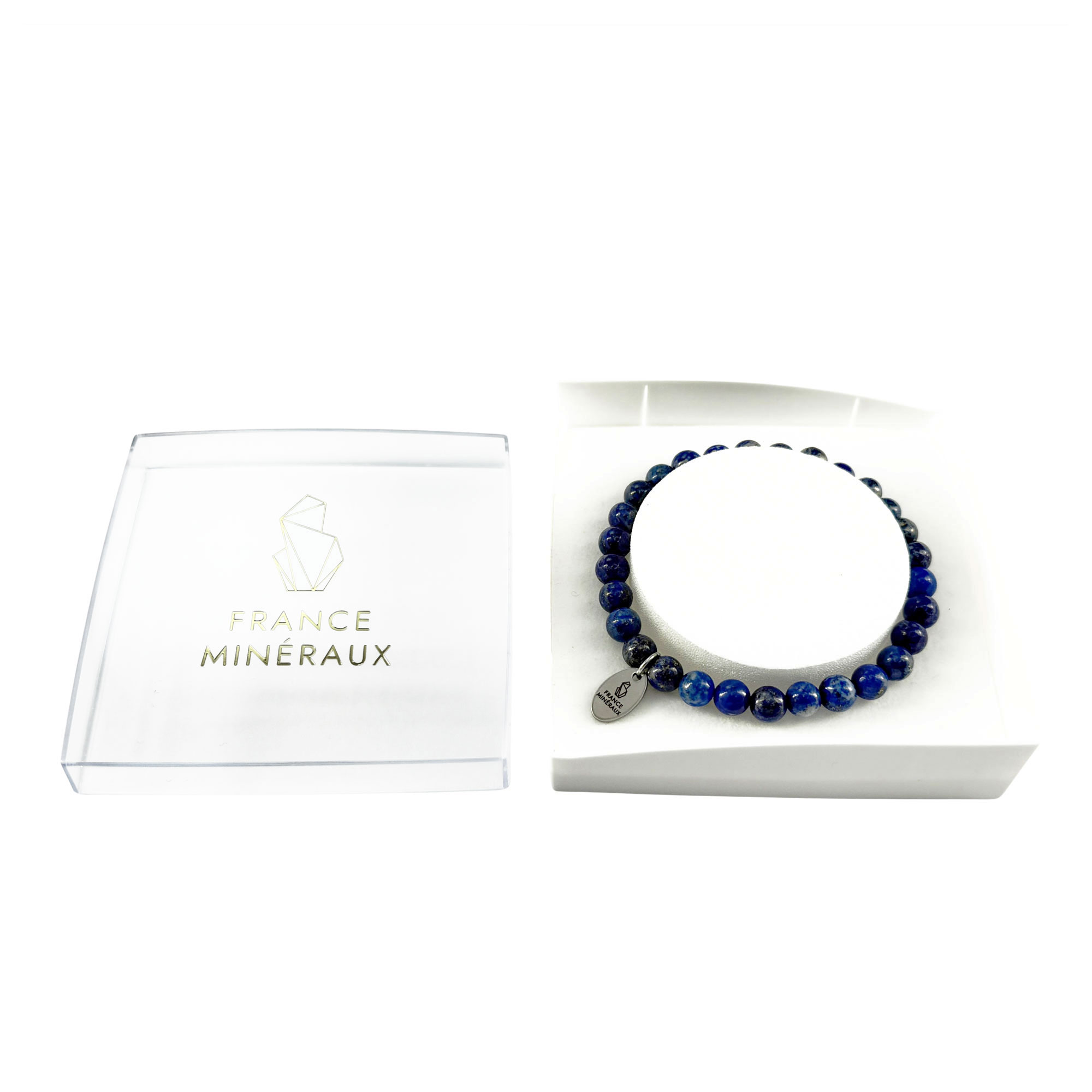 Le bracelet lapis-lazuli en pierres boules de 6mm qui vous est proposé par France Minéraux met en avant la splendeur de sa pierre. De ses magnifiques variantes de bleu marine, le lapis-lazuli qui est proposé fait l’objet d’une fine sélection, pour garantir une qualité de bijoux, en l’occurrence de bracelet, optimale. Le bracelet en lapis-lazuli vous est exposé en 2 différentes tailles, à savoir : 18cm, correspondant environ à 29 pierres boules de 6mm ; 20cm, correspond environ à 32 pierres boules. Cependant, il est possible que ce bracelet en lapis-lazuli ne soit pas d’une taille adéquate à votre tour de poignet. Si tel est le cas, n’hésitez pas à nous communiquer la longueur que vous souhaitez, ce sera avec grand plaisir de réaliser pour vous, un bracelet en lapis-lazuli de 6mm sur mesure.