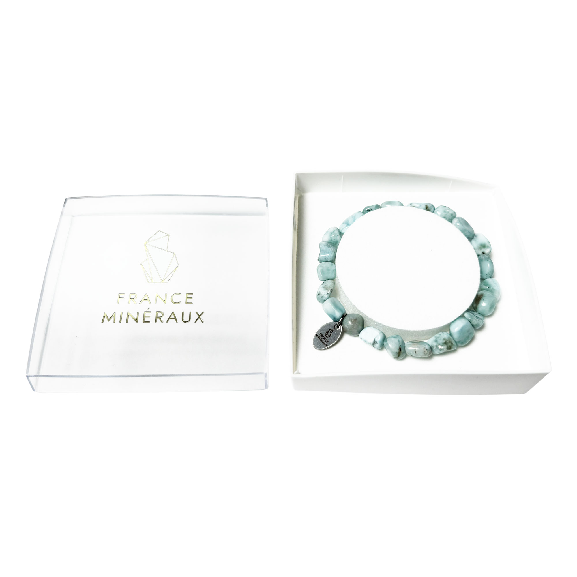 Les artisans de France Minéraux ont choisi de polir la pierre larimar afin de mettre en avant la beauté de ses nuances et de ses motifs. Le bracelet larimar en pierres pépites est fabriqué de façon artisanale, en France. Chaque pierre qui la compose a été taillée à la main. Ce bijou délicatement ouvragé pourra être assorti à d’autres modèles, afin de constituer un parure. Vous pourrez choisir des bijoux en larimar, pour plus d’harmonie, ou des pierres aux vertus complémentaires mais aux apparences différentes, pour une pointe de fantaisie. Grâce à leur grande qualité, les bracelets en larimar pourront être offerts en tant que cadeaux à des proches, pour une occasion particulière ou simplement comme attention. Vous pouvez aussi choisir de vous les offrir en cadeau. Cette pierre n’est pas seulement appréciée pour sa beauté : elle dispose de nombreuses propriétés énergétiques, que ce soit sur le plan mental ou physique. Ces vertus sont développées dans les paragraphes suivants.