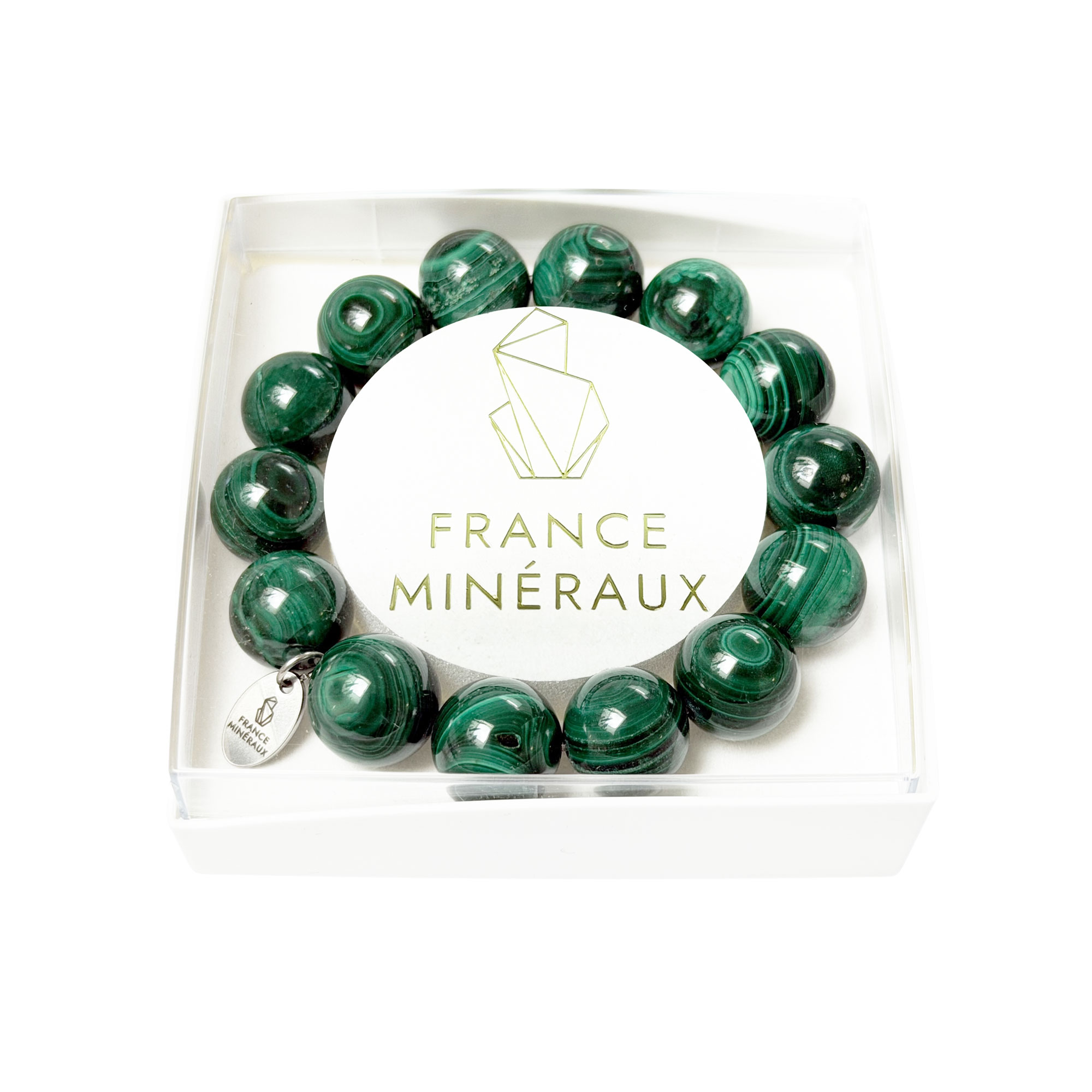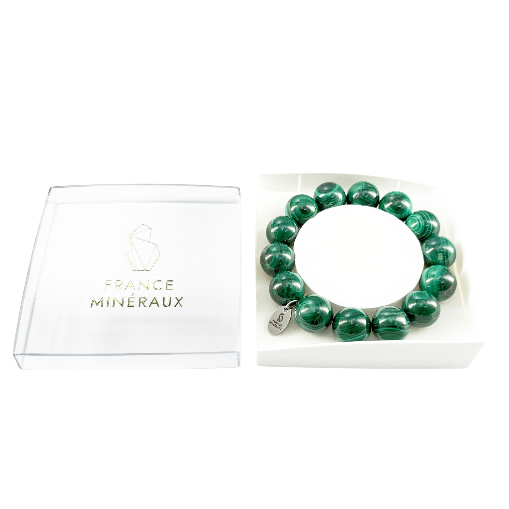 Comme pour chacune de nos pièces, les pierres boules de ce bracelet malachite 14mm ont été sélectionnées avec attention, autant pour leur beauté que pour leurs grandes qualités. Vous avez ainsi la garantie d’avoir un bracelet élégant et unique. Afin de correspondre le plus possible à vos besoins, nous vous proposons ce bracelet en deux tours de poignet : 18 cm (environ 12 perles) et 20cm (environ 14 perles). Pour personnaliser votre bijou jusque dans ses finitions, vous pouvez également choisir entre un fermoir en or ou en argent, ou même un bracelet sans fermoir, monté dans ce cas là sur un fil élastique. Pour ranger facilement votre bracelet, nous vous offrons un élégant pochon en satin. Mais vous pouvez également opter pour notre écrin blanc perle.