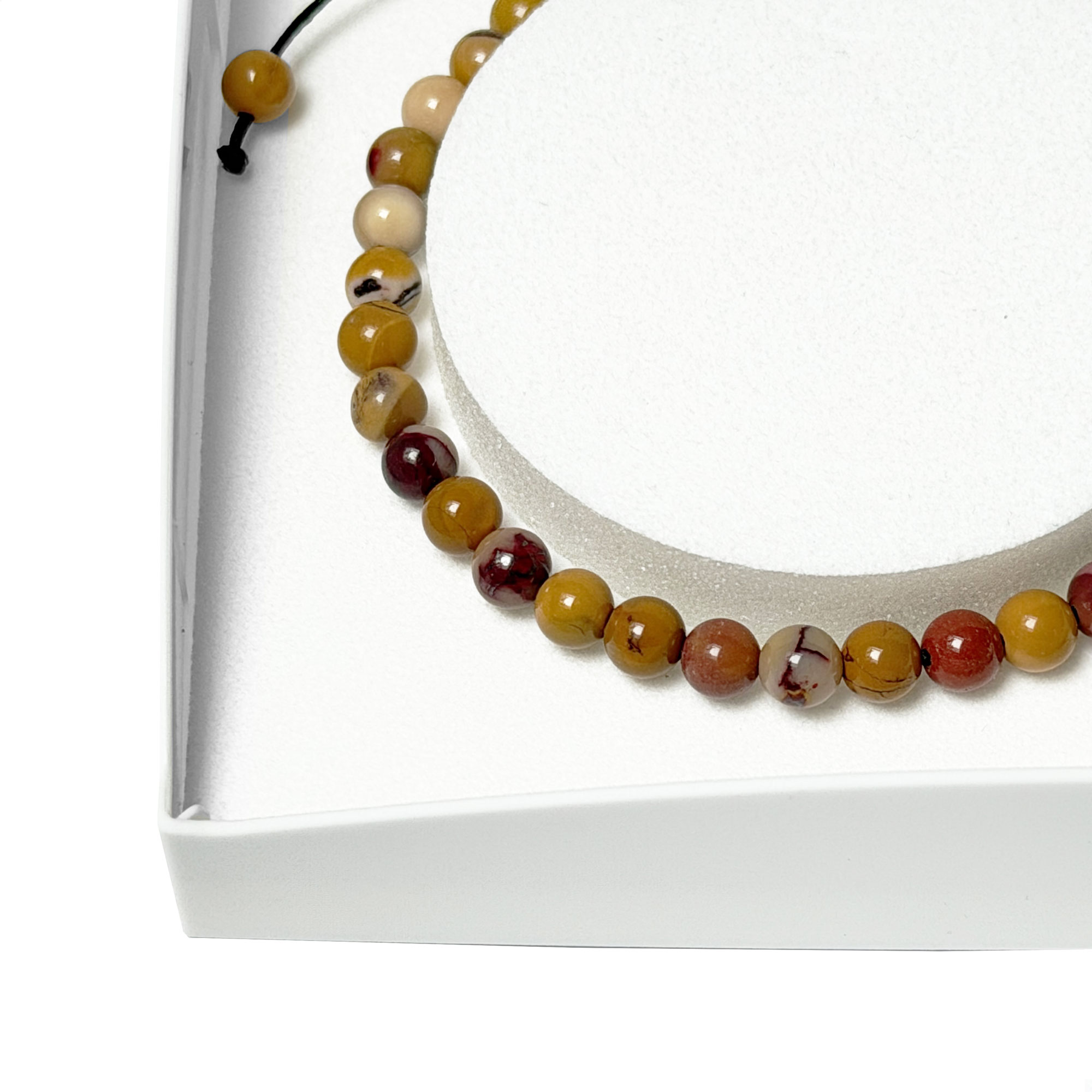 Bracelet Mookaïte composé de pierres boules de 4mm cordon ajustable