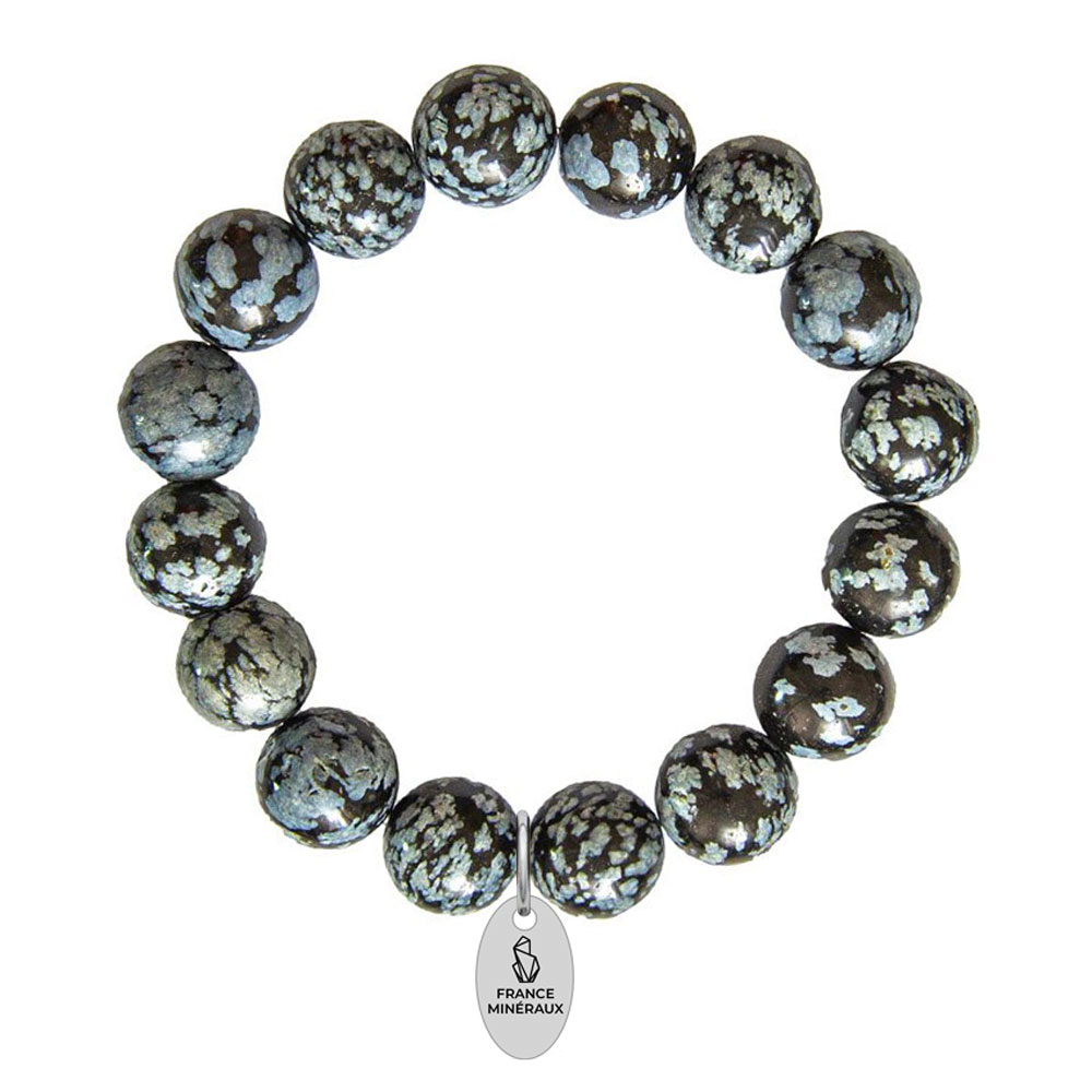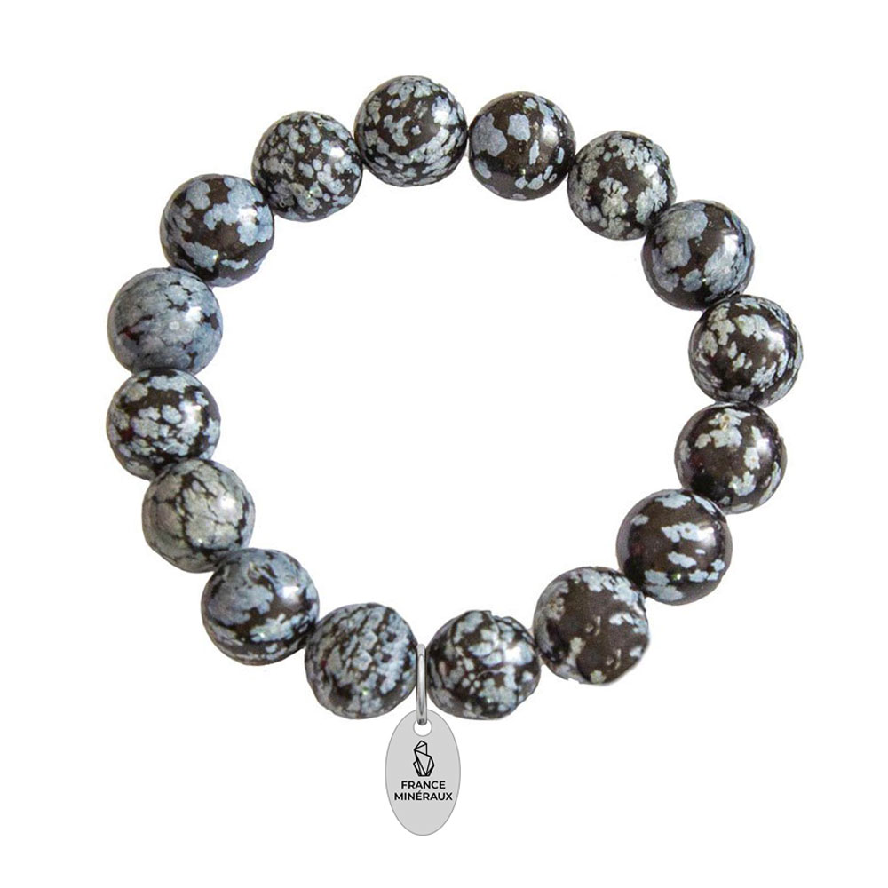 Descriptif du bracelet obsidienne flocon de neige en pierres boules 12mm