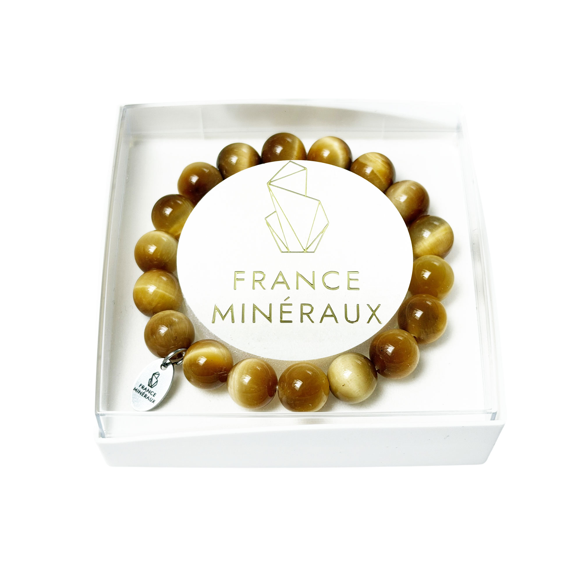 Laissez-vous tenter par ce magnifique bracelet oeil de tigre doré en pierres boules de 10mm de grande qualité. Confectionné à la main, chaque perle est sélectionnée avec le plus grand soin par le savoir-faire des équipes de France Minéraux, leader français des pierres de santé. France Minéraux vous propose ce bracelet oeil de tigre doré 10mm en deux longueurs différentes. La première taille est de 18 cm et comporte une vingtaine de perles. La deuxième taille est de 20 cm et comporte environ 25 perles. Ces dimensions standards sauront s’adapter facilement à votre taille de poignet. Si tel n’était pas le cas, il est également possible de nous contacter et nous vous confectionnerons un bracelet sur mesure, de la longueur et du nombre de perles de votre choix. Initialement utilisée sous l’Empire Romain par les guerriers pour se protéger lors des combats, la pierre œil de tigre de couleur brun et jaune est encore aujourd’hui considérée comme une pierre de protection. En plus d’embellir votre poignet de ses couleurs et de son éclat uniques, ce bracelet œil de tigre doré en pierres boules de 10mm laissera agir toutes ses propriétés de lithothérapie.