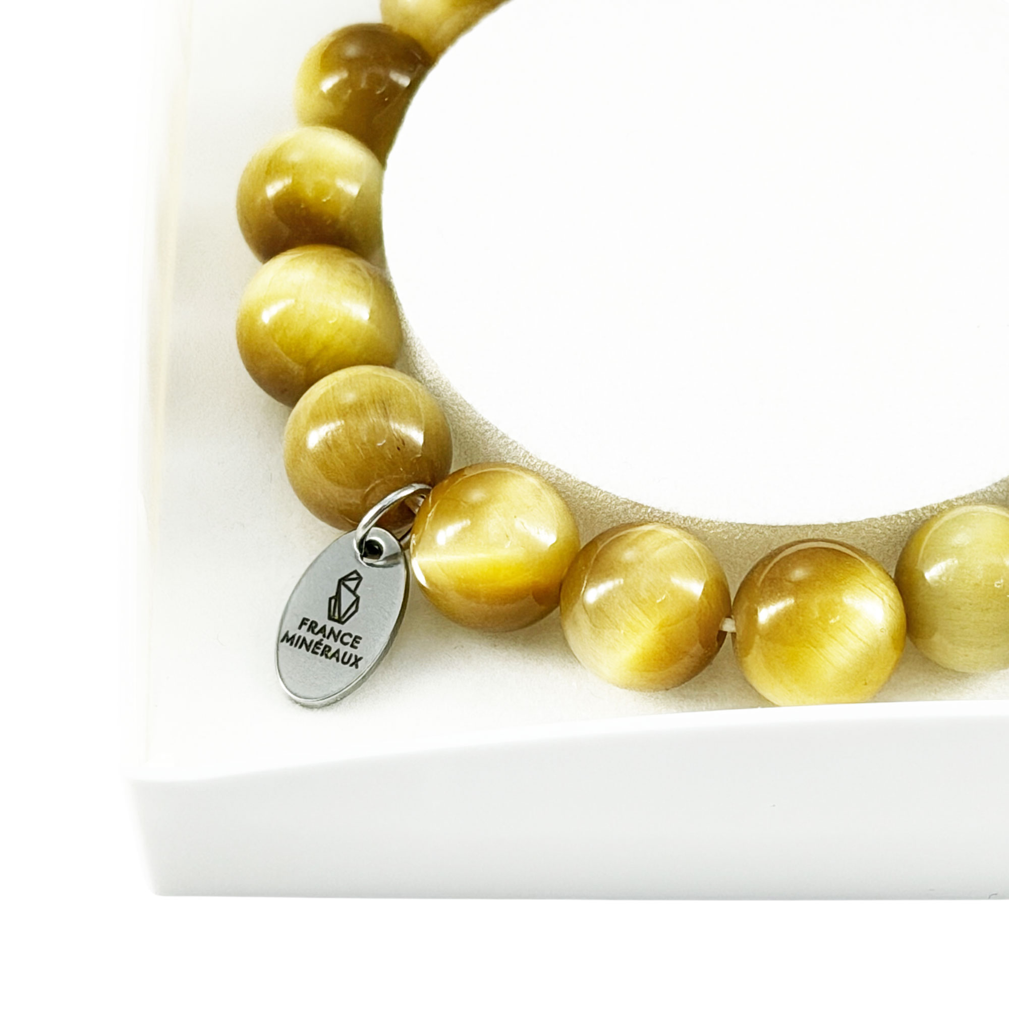Entretien du bracelet oeil de tigre doré en pierres boules 10mm