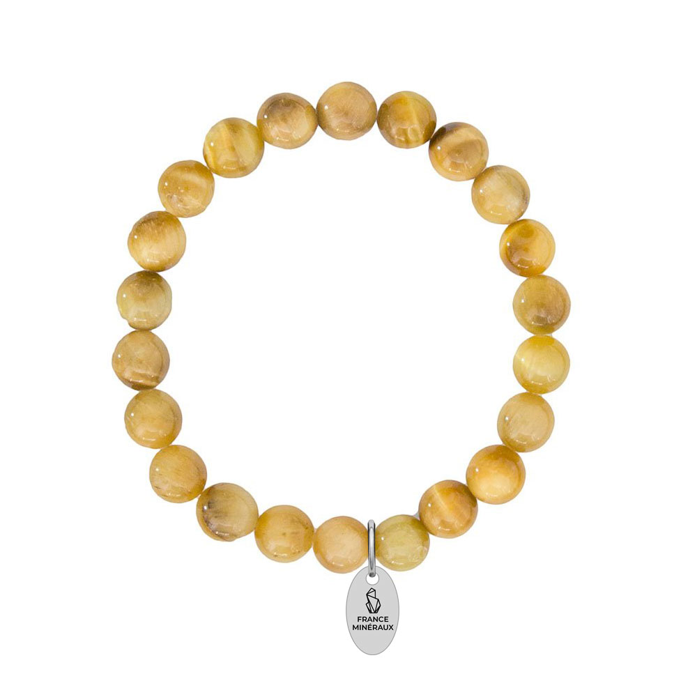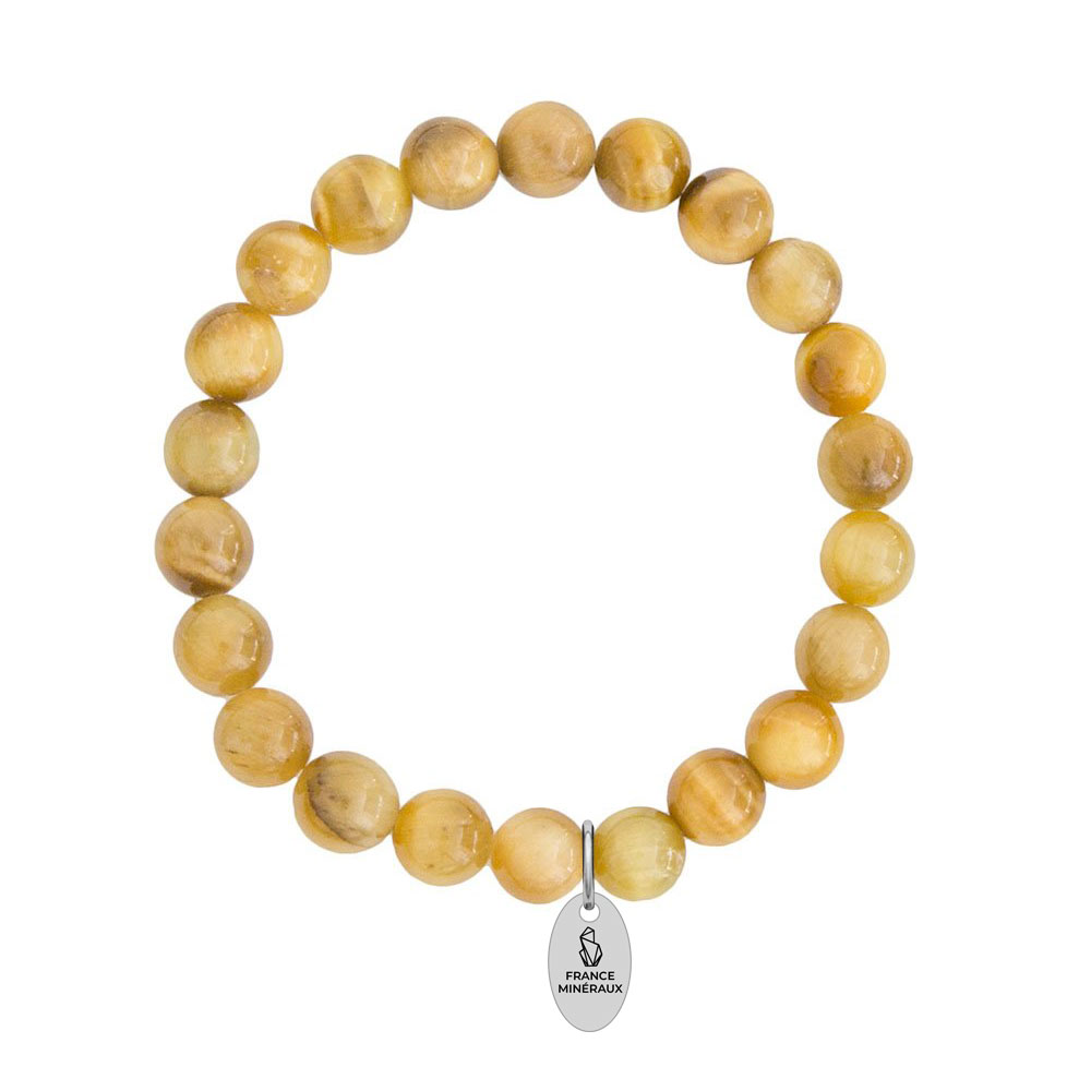 Chaque bracelet oeil de tigre doré, tout comme l’ensemble des colliers et bracelets, sont confectionnés à la main en France par l’équipe de France Minéraux. Soigneusement et assidûment sélectionnées au détail, les pierres boules 8mm en oeil de tigre doré sont 100% garanties qualité et sont chacune authentique. Vous n’en trouverez pas 2 pareils, elles ont toutes leur énergie et leur propriété. Grâce à ce bracelet, vous pourrez jouir pleinement des propriétés de l’oeil de tigre doré en lithothérapie. La pierre sera au contact direct de votre repos et laissera agir pleinement ses propriétés. Si vous souhaitez recevoir plus amples informations quant à ses propriétés, découvrez celles inscrites ci-dessous ou joignez directement la rubrique “Vertus des pierres”. Si toutefois vous souhaitez un bracelet personnalisé à partir d’oeil de tigre doré, n’hésitez pas à prendre contact directement avec nous et ce sera avec grand plaisir de réaliser votre souhait.