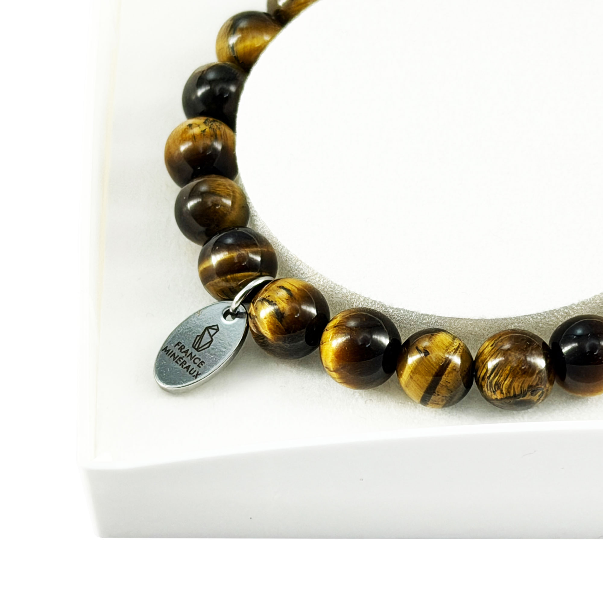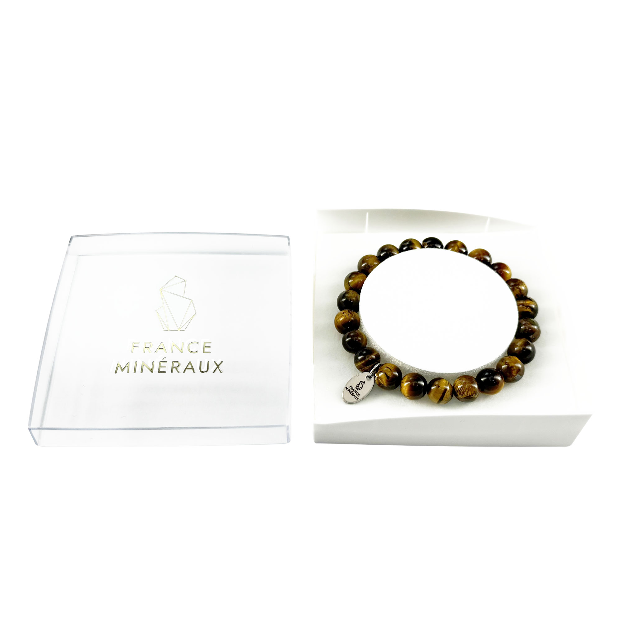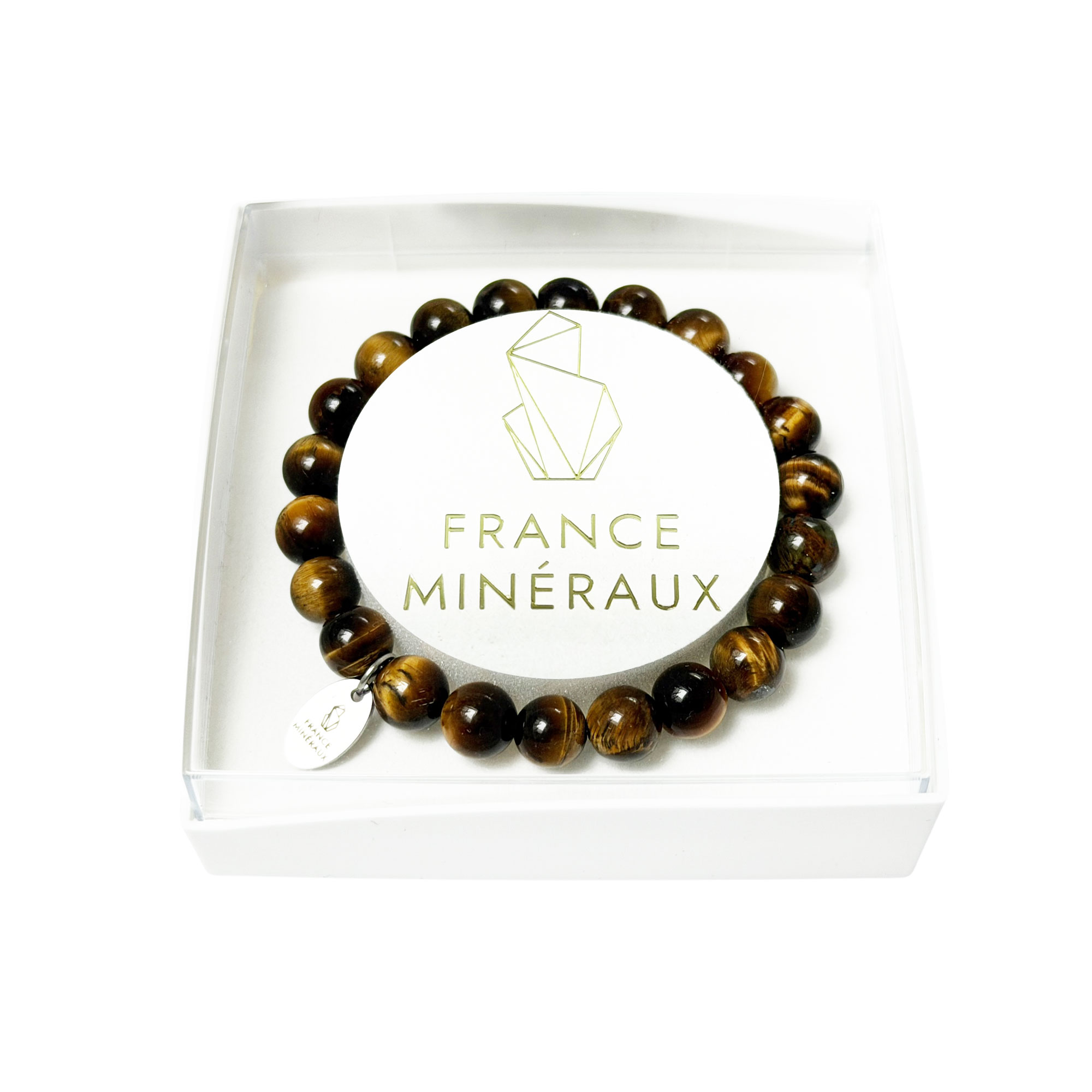 Conçues à partir de pierres boules 8mm authentiques et délicatement sélectionnées par l’équipe de France Minéraux, le bracelet oeil de tigre vous expose sa chaleureuse pierre dans son éclat le plus total. En choisissant le bracelet oeil de tigre, vous laisserez agir les propriétés énergétiques de sa pierre tout en portant son magnifique design. De très haute qualité, les perles en pierre oeil de tigre que nous vous proposons laisse entrevoir le voile majestueux de l’animal. Pour en découvrir plus sur les propriétés de l’oeil de tigre, rendez-vous ci-dessous pour avoir un bref aperçu ou rejoignez directement la page dédiée à cette pierre au travers de notre section d’information vertus des pierres. Pour tout autre demande notamment si vous souhaitez ajouter certaines pierres ou composer avec d’autres perles, n’hésitez pas à nous en faire part et ce sera avec grand plaisir que l’un des membres de notre équipe vous recontactera pour confectionner le bijou de votre choix.