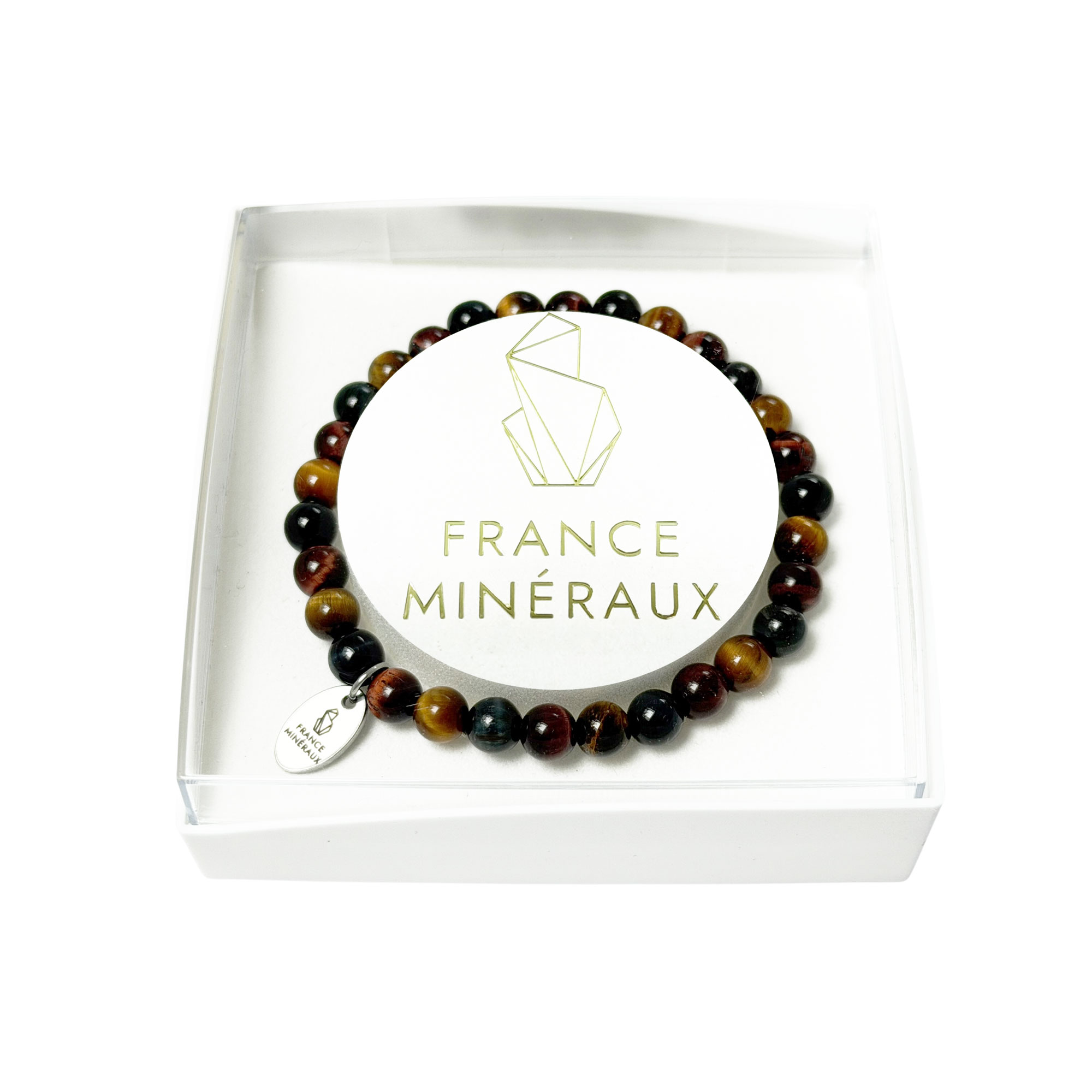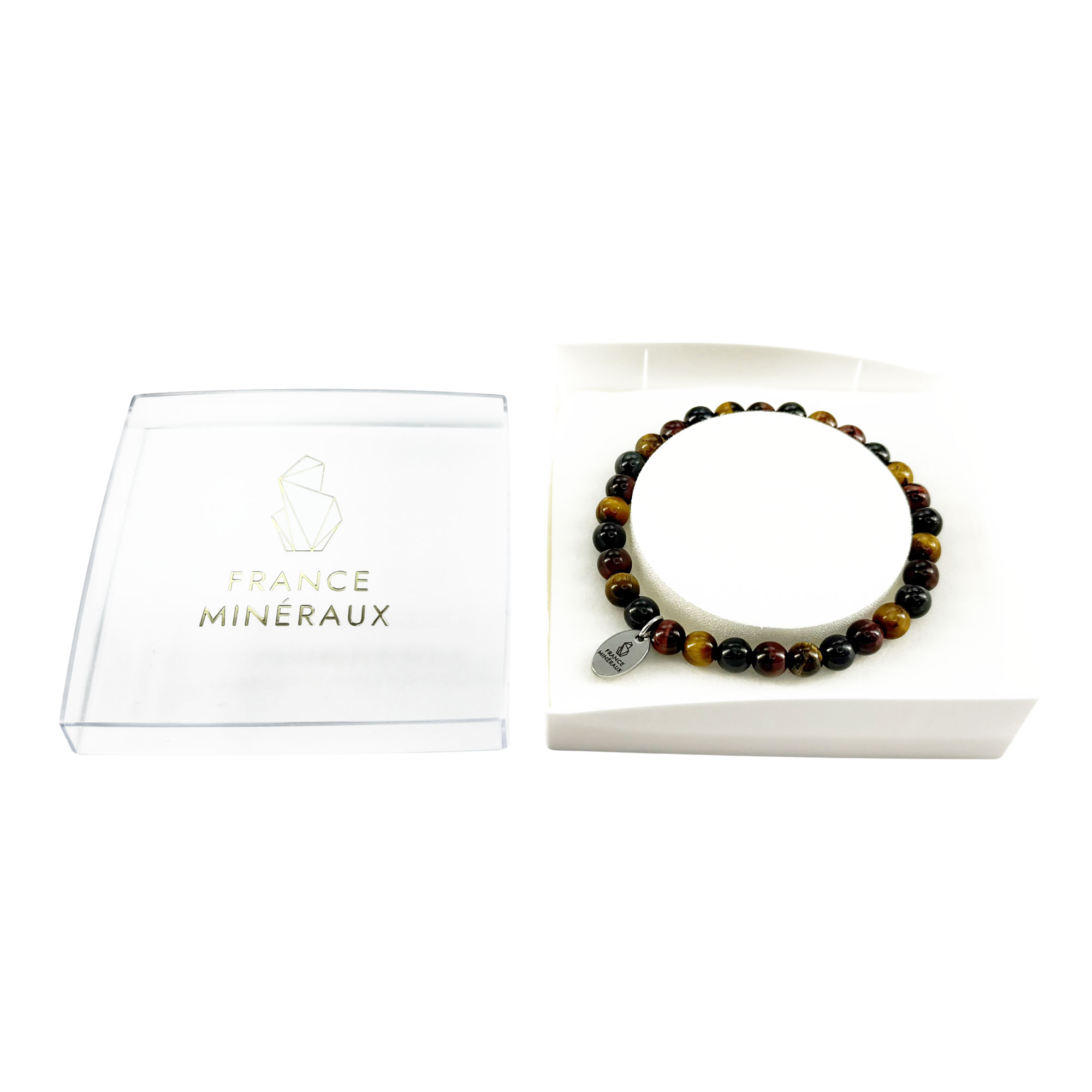 Le Bracelet Œil de Faucon, Taureau, Tigre est composé de pierres boules de 6mm, montées sur un fil élastique résistant pour un confort optimal. Avec une longueur de 18cm, il s’adapte parfaitement à la plupart des poignets. Ce bracelet combine trois types d’œils : l’œil de faucon, l’œil de taureau et l’œil de tigre. Chaque pierre apporte ses caractéristiques uniques tout en formant un ensemble harmonieux. L’œil de faucon est connu pour ses reflets gris-bleu, l’œil de taureau pour ses tons brun foncé et l’œil de tigre pour ses couleurs dorées et noires rayées, créant un bracelet à la fois élégant et énergétiquement puissant.