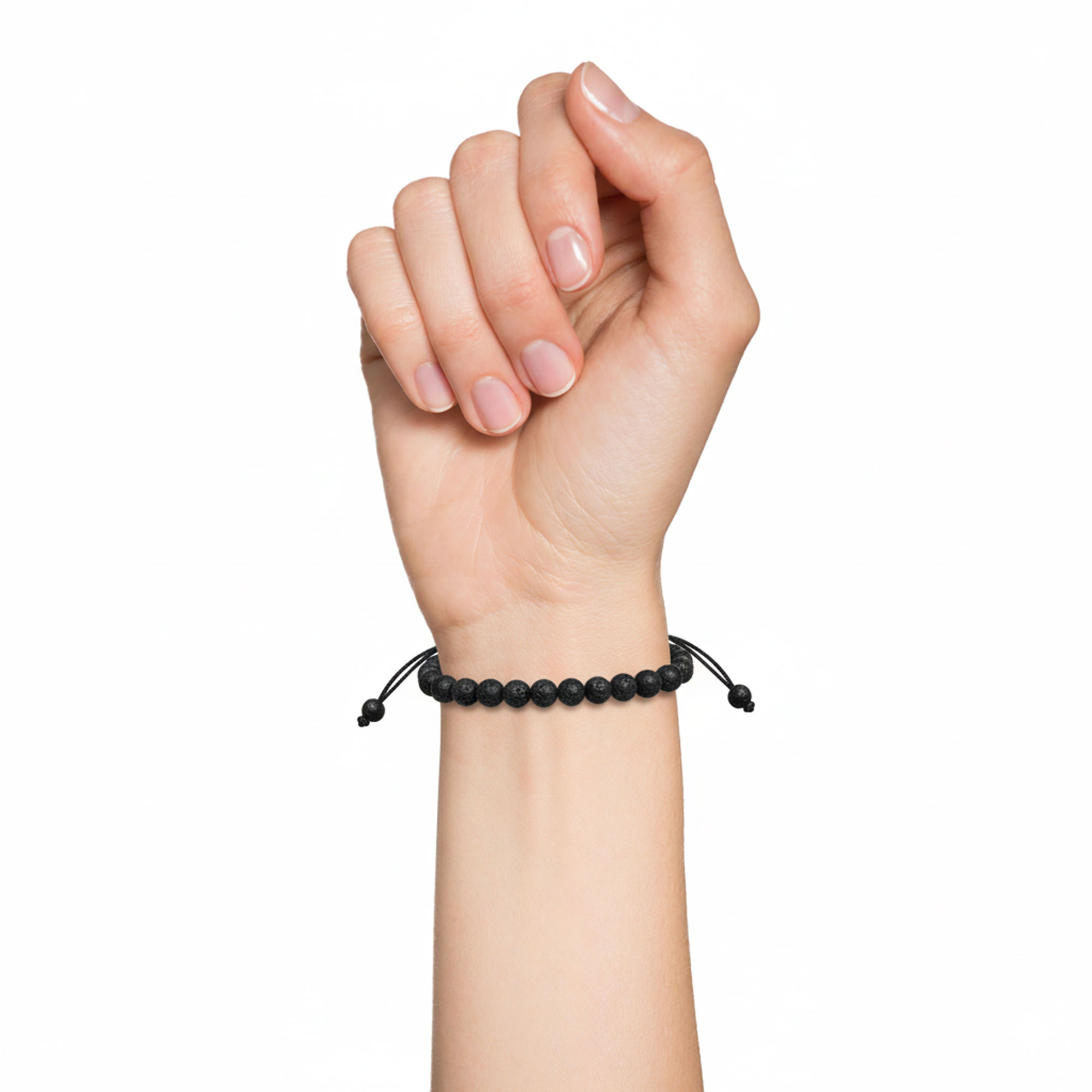 Bracelet Pierre de lave composé de pierres boules de 4mm cordon ajustable