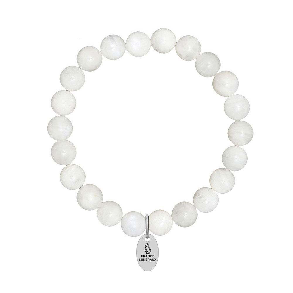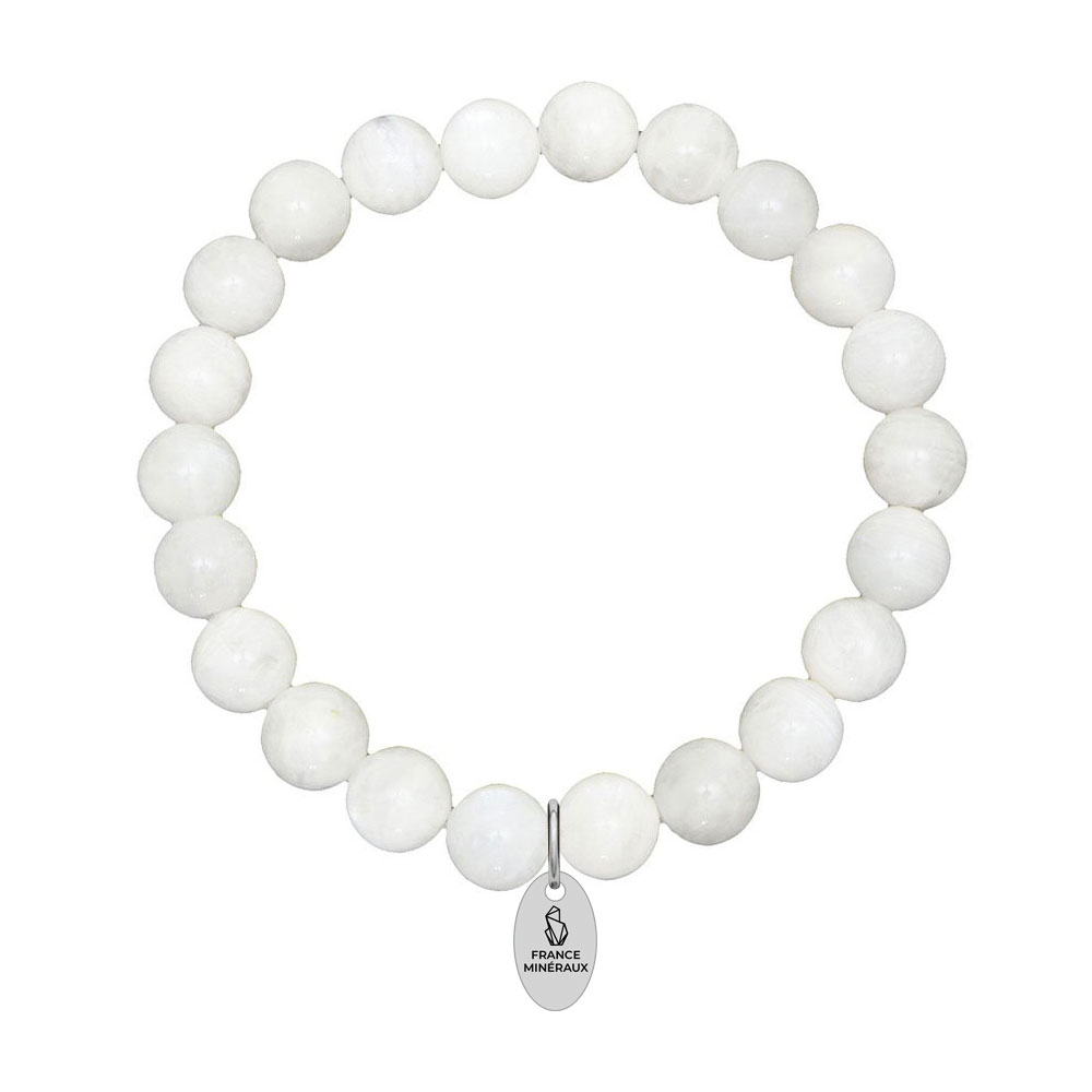 Bijou céleste et de grande pureté, le bracelet pierre de lune se laisse apparaître la douceur la plus totale. Cette pierre est beaucoup utilisée en lithothérapie pour de nombreux bienfaits et les grandes propriétés qu’offre la pierre de lune. Pour les connaître dans le détail, vous pouvez soit vous rendre en bas de page et lire les principaux attributs ou bien vous rendre directement sur la page d’information dédiée à la pierre de lune dans les vertus des pierres. En terme de qualité, France Minéraux s’engage sur ce bracelet en pierre tout autant que sur l’ensemble de ses bijoux, à proposer des bijoux de haute qualité et confectionné à la main. Chaque bracelet est conçu en France et fait preuve d’une sélection drastique au niveau des pierres boules 8mm sélectionnés, afin que chaque perle soit unique et authentique. Si vous souhaitez composer votre bracelet en pierre de lune avec une autre pierre ou plusieurs autres types de pierres, faites nous en à la demande directement via le formulaire de contact et nous vous recontacterons dans les plus brefs délais pour répondre favorablement, dans la mesure du possible, à votre demande.