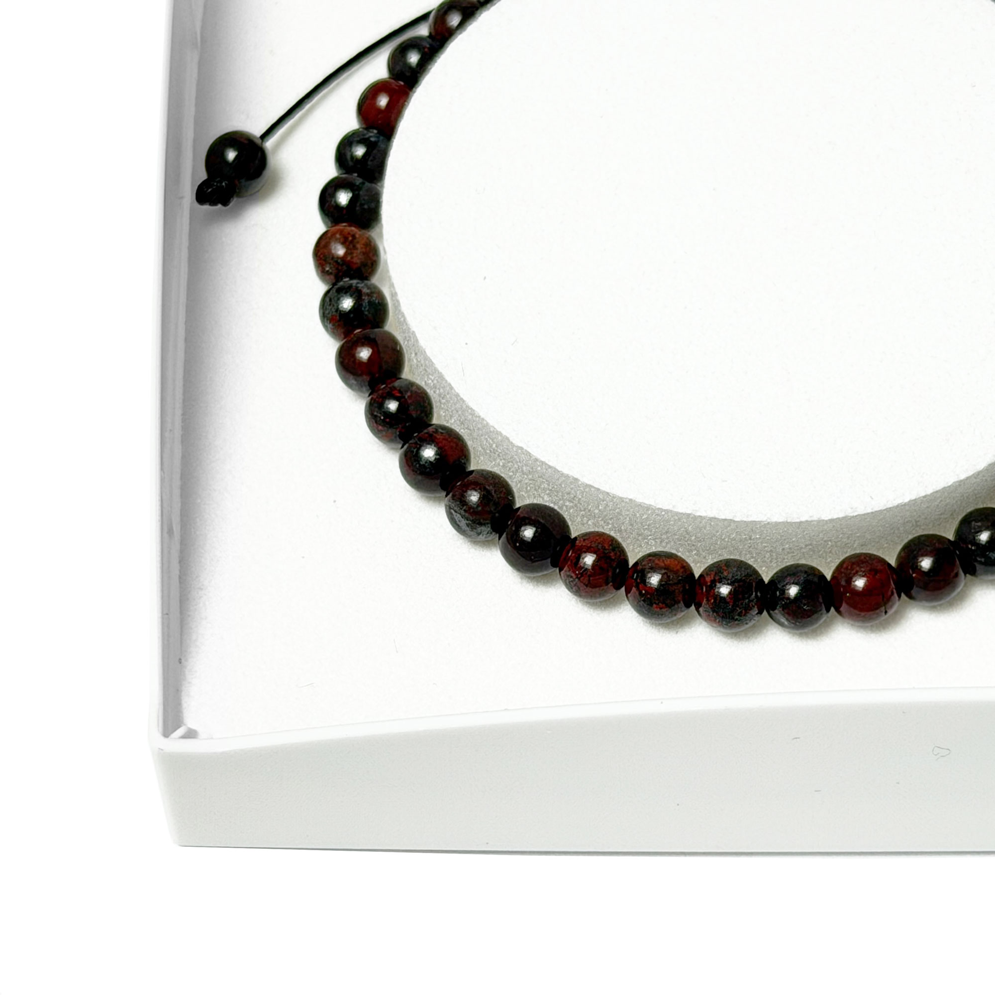 Descriptif du bracelet Pierre de sang en pierres boules 4mm cordon ajustable