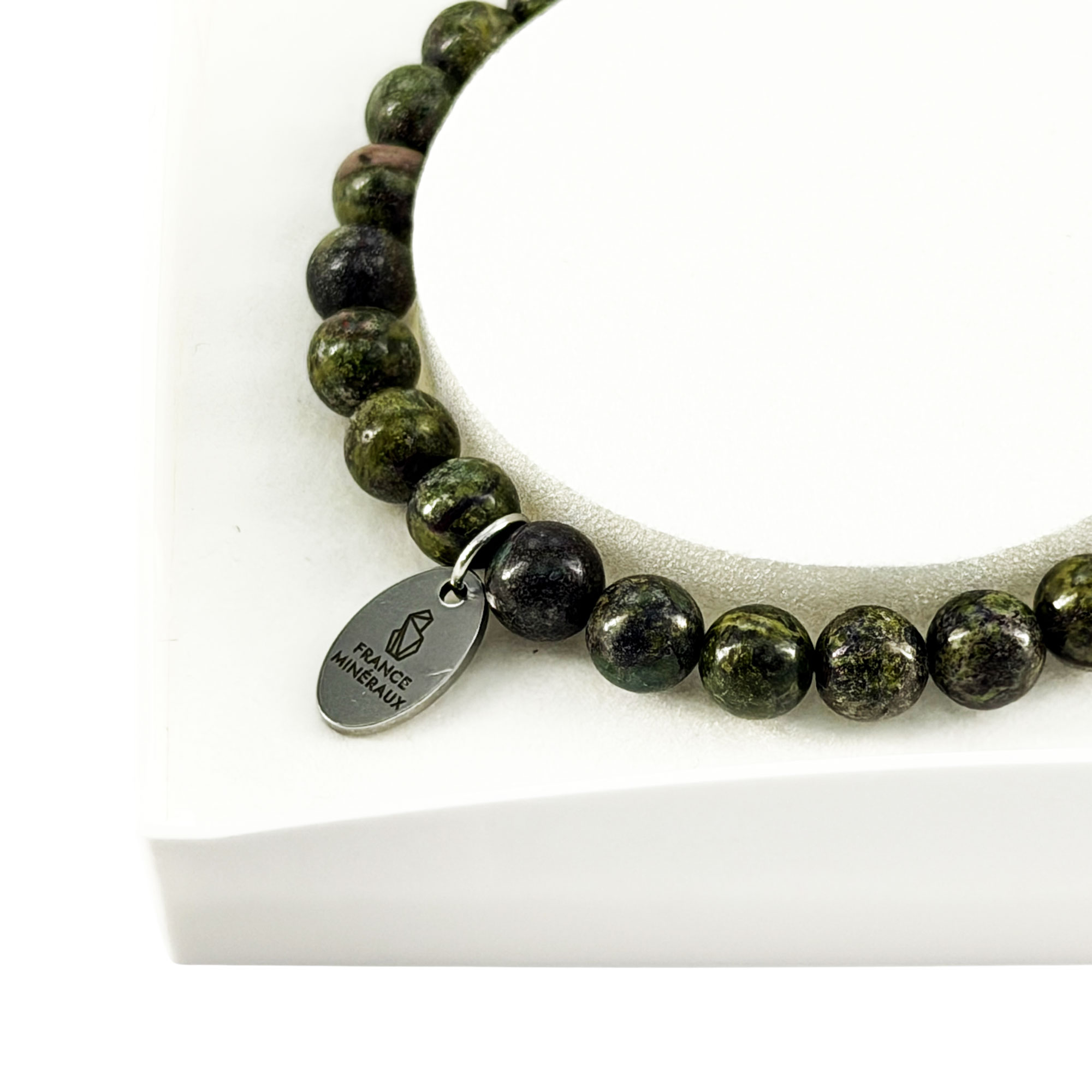 La pierre de sang est appelée ainsi à cause de son apparence sombre qui comporte des taches rouges qui rappellent la couleur du sang humain. Depuis l’Antiquité, elle est prisée et très recherchée. Les chrétiens y sont particulièrement attachés puisqu’ils vont même jusqu’à l’appeler « la pierre du Christ » en pensant que le sang lui appartient. Il a souvent servi de talisman dans le temps pour son pouvoir de protection contre les énergies négatives et la magie noire. Aujourd’hui, la pierre est surtout connue pour son aide à surmonter les passions. Le bracelet Pierre de sang en pierres boules 6mm a été créé par France Minéraux par des personnes qui peuvent justifier d’un savoir-faire dans le domaine des pierres précieuses et de la bijouterie. Ce bracelet peut se porter au poignet pour vous garantir une protection tout au long de votre vie. Pour ce faire, vous devez penser à l’entretenir et le recharger régulièrement.