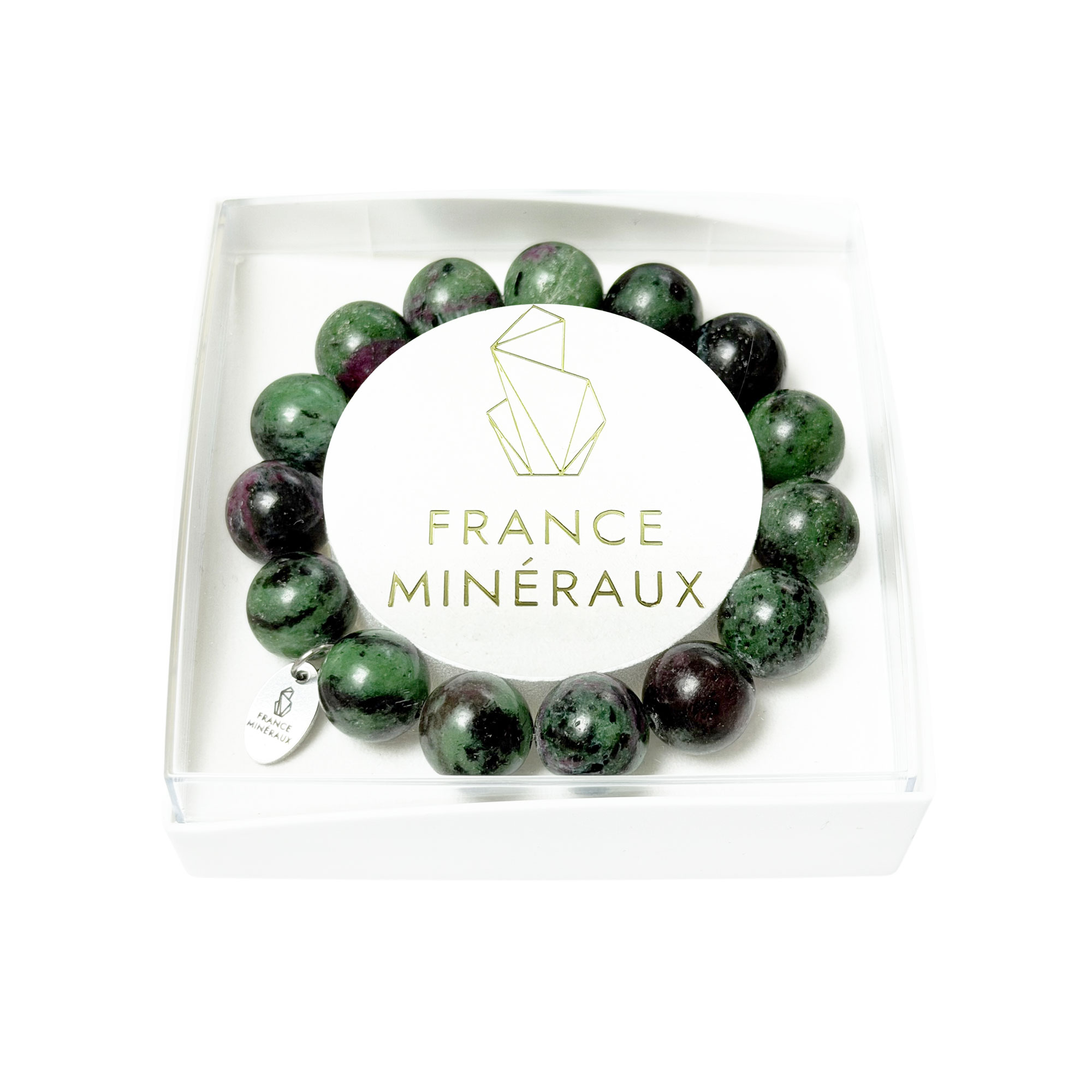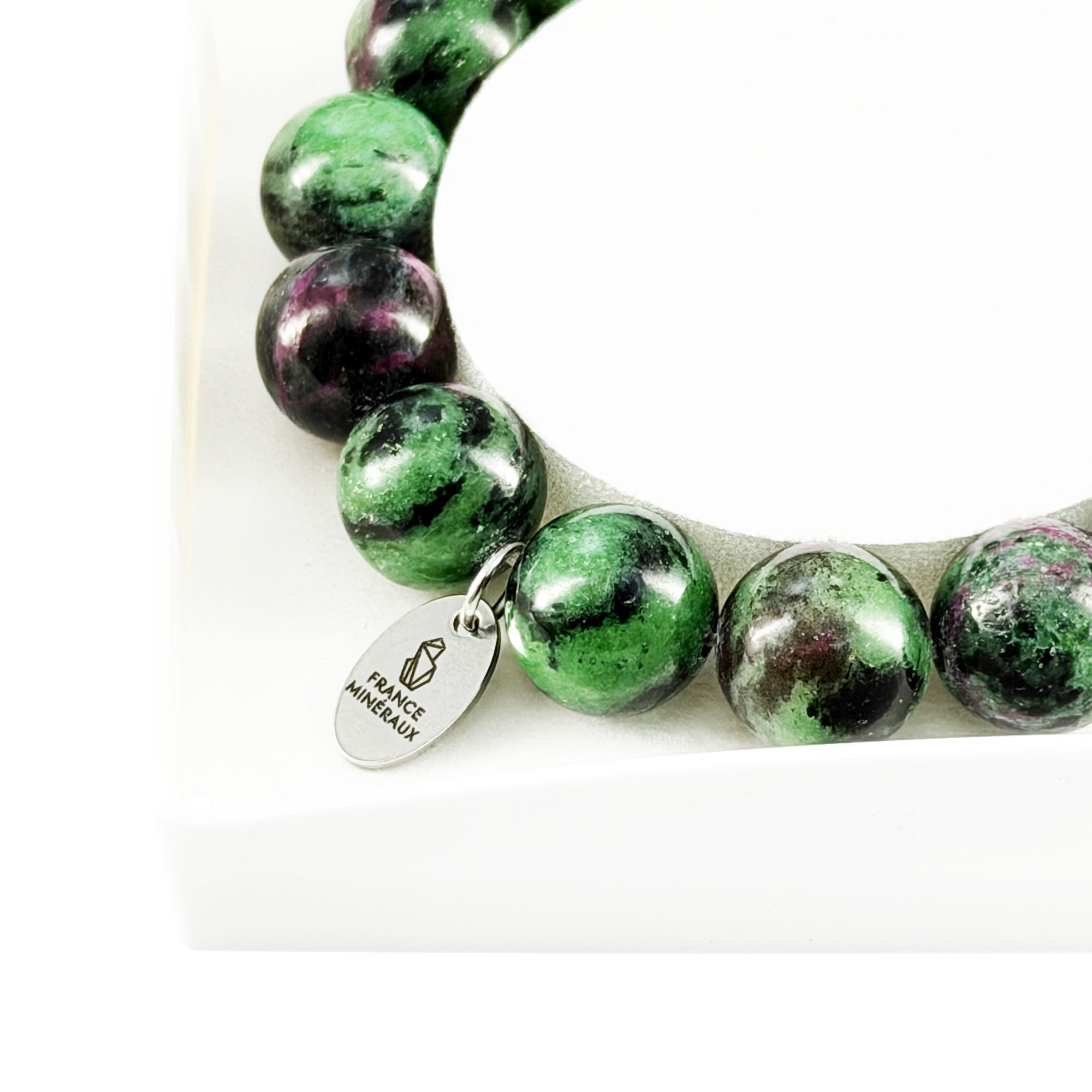 Le rubis est présent depuis l’Antiquité, pour sa beauté, sa rareté et ses propriétés. Cependant, le rubis sur zoïsite n’a été découvert qu’en 1805, par un géologue Allemand. L’association de la zoïsiste, reconnaissable à son opacité et à sa teinte verte, avec des inclusions de rubis, rouge, crée un esthétisme unique, qui attire le regard. Grâce au bracelet rubis sur zoïsite en pierres boules de 12mm, vous pouvez conserver près de vous des fragments polis de cette pierre, qui allie beauté et propriétés en lithothérapie. Le rubis sur zoïsite symbolise l’amour, notamment le cœur spirituel, et apporte une grande énergie, au corps comme à l’esprit. Afin de mieux connaître son intérêt en lithothérapie, nous vous invitons à consulter les rubriques suivantes.