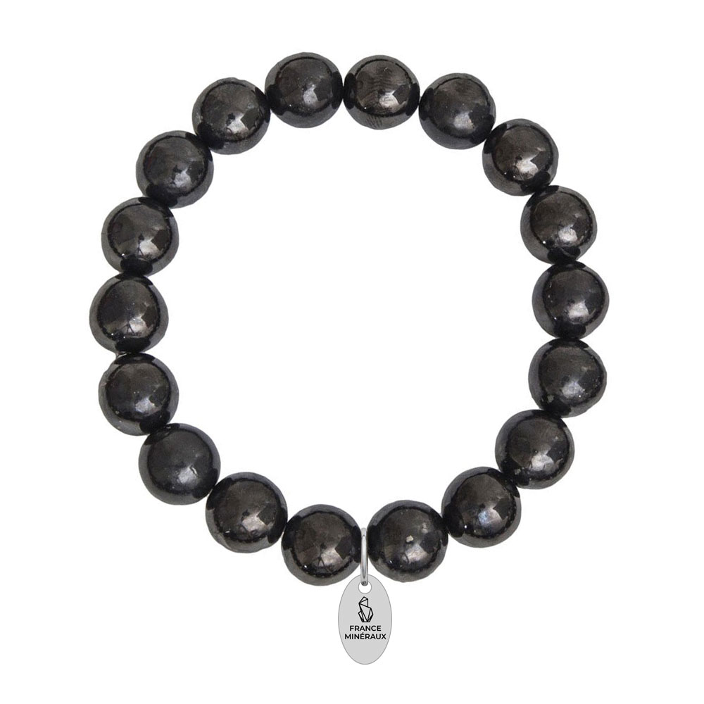 Dans l’ensemble de ses collections de parures, notre enseigne France Minéraux, leader des pierres de santé en France, a sélectionné les plus belles et éclatantes perles de ce minéral unique. Taillés en fines perles par un artisan, les extraits ont été affinés afin de confectionner ce bracelet shungite en pierres boules de 10mm.