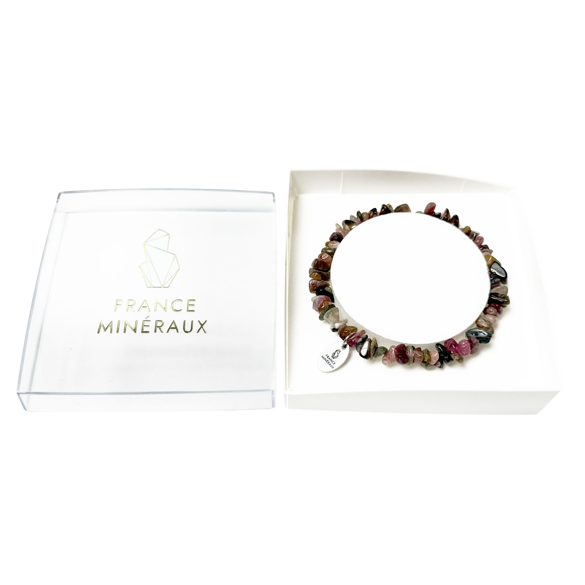 Le bracelet tourmaline multicolore baroque est un fin bracelet à porter au poignet le plus souvent possible. Il convient autant aux hommes qu’aux femmes, à des personnes jeunes ou plus âgées. C’est un bijou délicat et élégant. Discret visuellement, il est cependant puissant dans ses effets. Les pierres utilisées dans la réalisation de ce bracelet sont toutes différentes. Elles peuvent être multicolores, roses, vertes, bleues, grises, blanches, noires… Elles s’agencent et alternent pour créer un ensemble harmonieux : le bracelet tourmaline multicolore 19cm. La tourmaline appartient à la famille minérale des silicates. Aujourd’hui, elle est extraite principalement en Asie (Chine, Sri Lanka), au Moyen-Orient (Pakistan Afghanistan), en Afrique (Mozambique, Nigéria) et en Amérique du Sud (Brésil).
