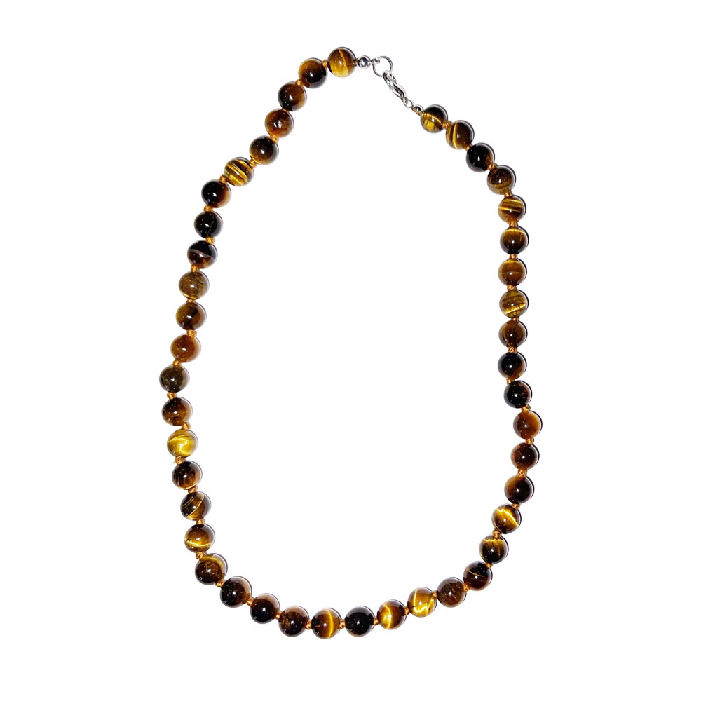 Collier Œil de Tigre – Pierres boules nouées 8mm – 45cm