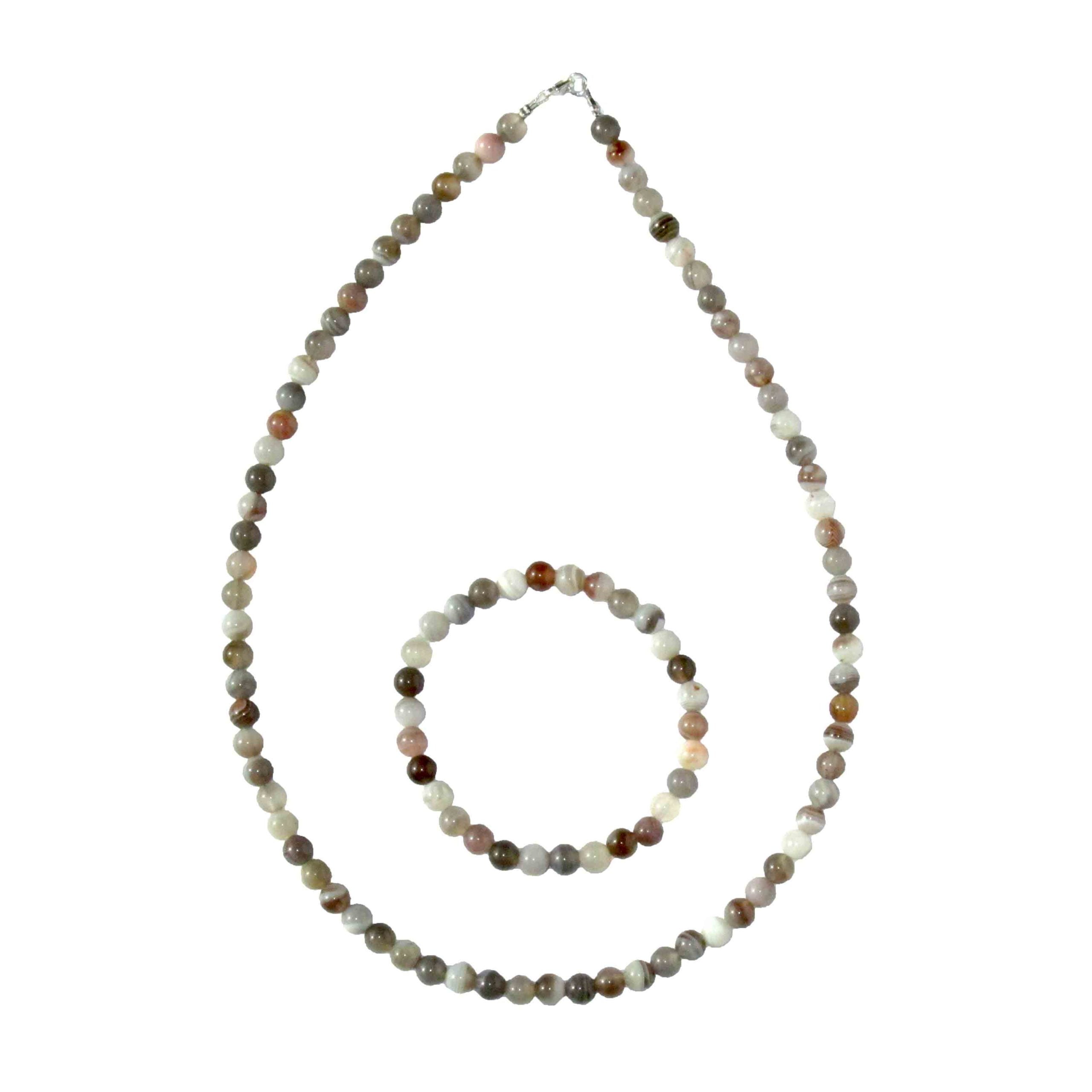 Parure composée du bracelet et du collier en agate botswana en pierres boules de 6mm