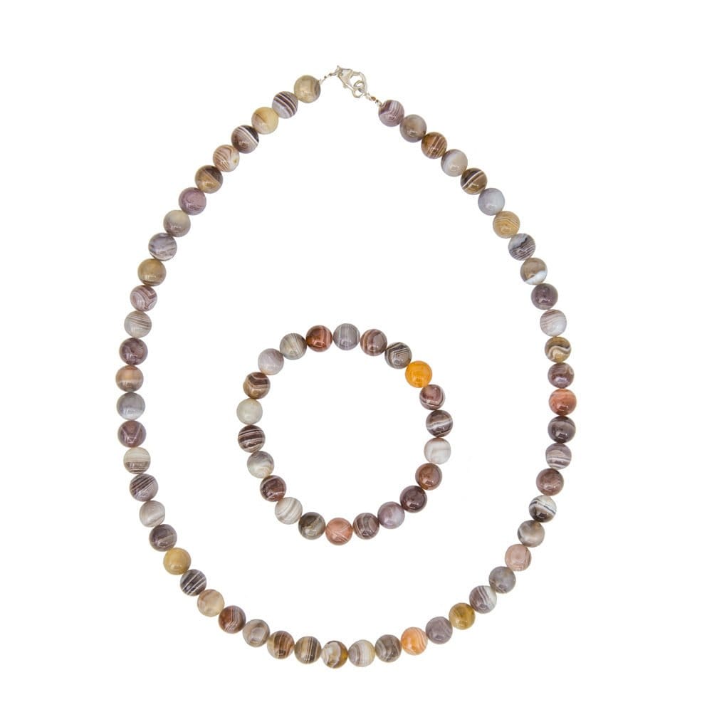 Parure composée du bracelet et du collier en agate botswana en pierres boules de 8mm