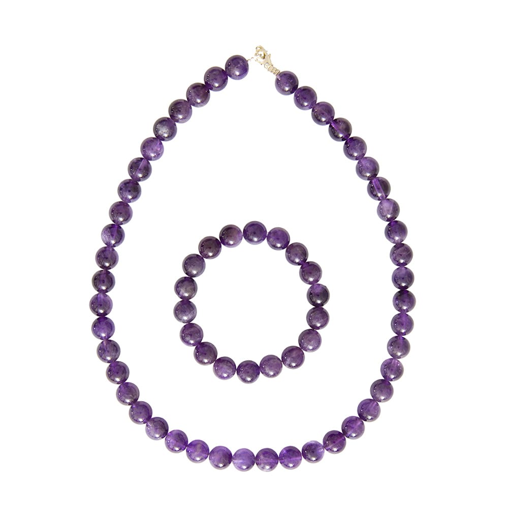 Parure composée du bracelet et du collier en améthyste en pierres boules de 10mm