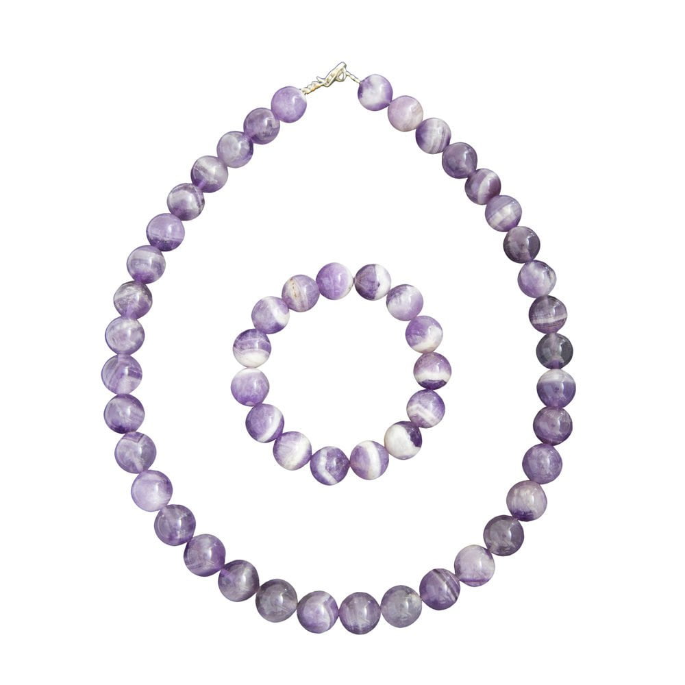 Retrouvez ici la parure améthyste en pierres boules de 12mm qui est mis à votre disposition avec plaisir. Cette parure améthyste 12mm est composée d’un élégant bracelet et d’un collier charmant en améthyste traditionnel. Aussi bien le collier que le bracelet sont faits de perles de haute qualité sélectionnées et assemblées avec le plus grand soin pour vous offrir des produits raffinés. Et pour répondre aux besoins de tous, le bracelet et le collier sont disponibles en différentes tailles.
