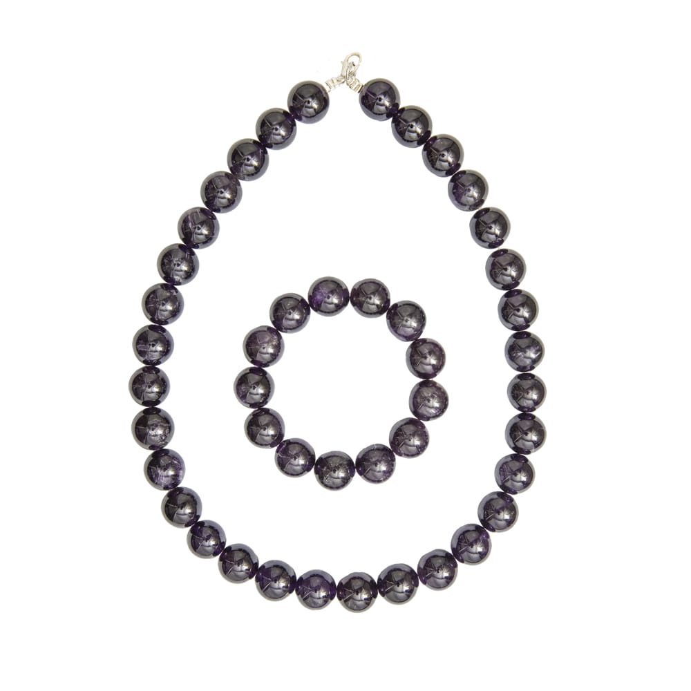 Parure composée du bracelet et du collier en améthyste en pierres boules de 14mm