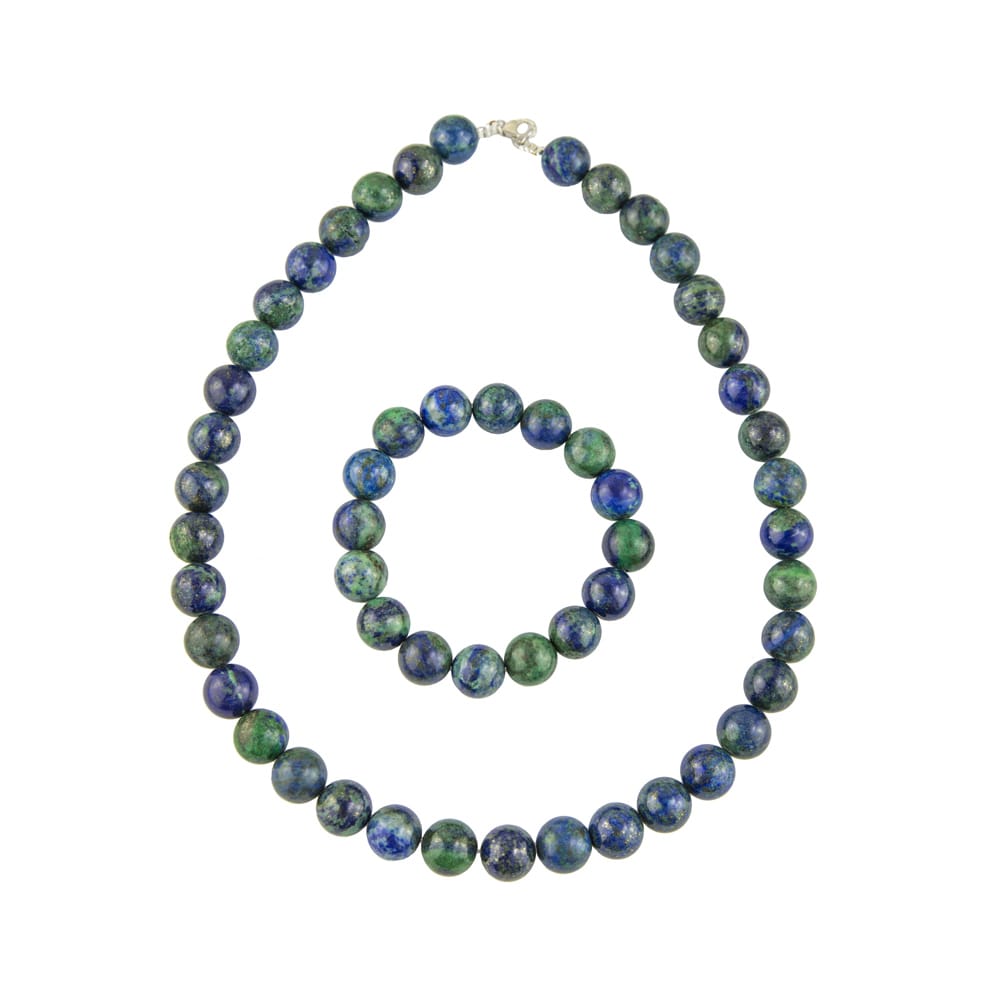 Parure composée du bracelet et du collier en chrysocolle en pierres boules de 12mm