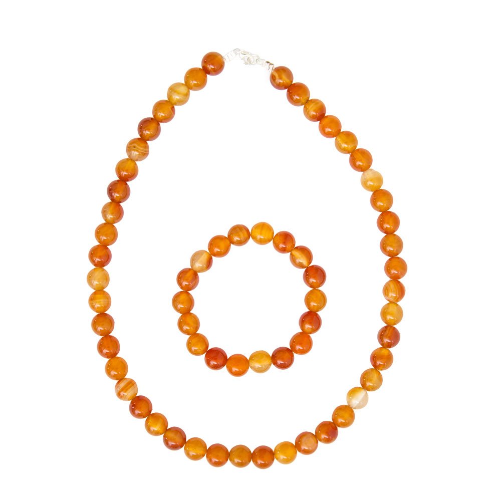 Parure composée du bracelet et du collier en cornaline en pierres boules de 10mm